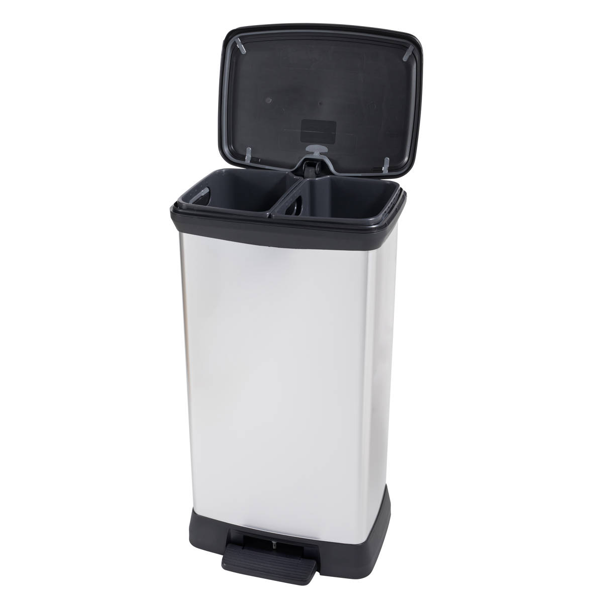 ゴミ箱 2分別 23L+23L ステンレス Deco ペダルビン ペダル式 ( ごみ箱 46リットル デコ ペダル ふた付き 軽量 シンプル プラスチック スタイリッシュ 袋止め付き 分別 )