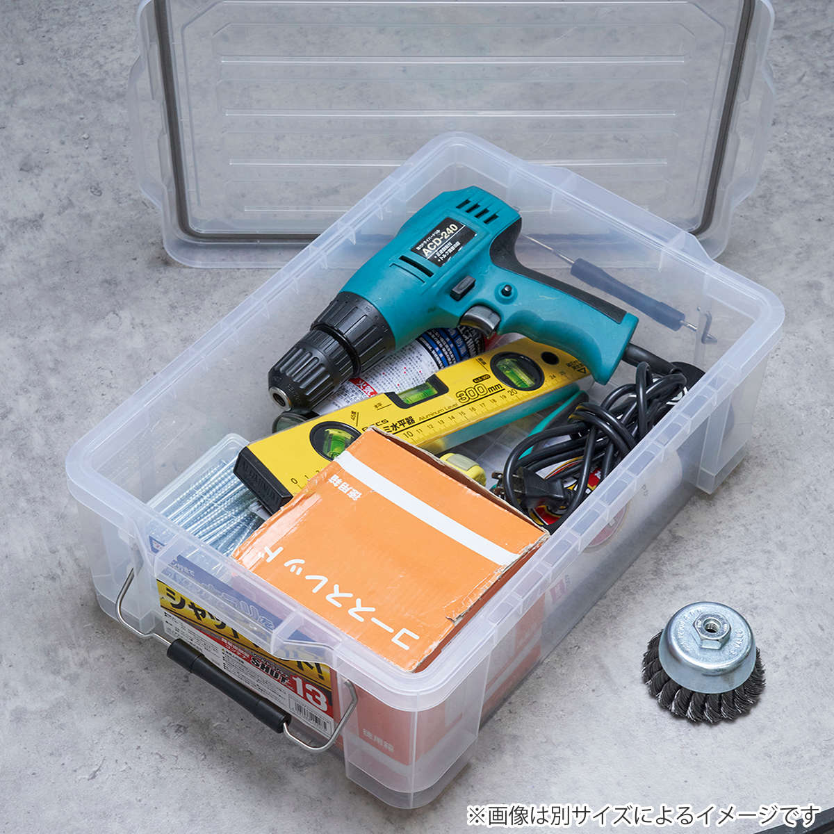 工具・アウトドア用品・防災グッズ・ガーデニング用品・衣類・おもちゃなど、様々な日用品の保管ができます。中身がひと目で確認できるクリアタイプのため、何を収納したか忘れにくく、管理がしやすいです。