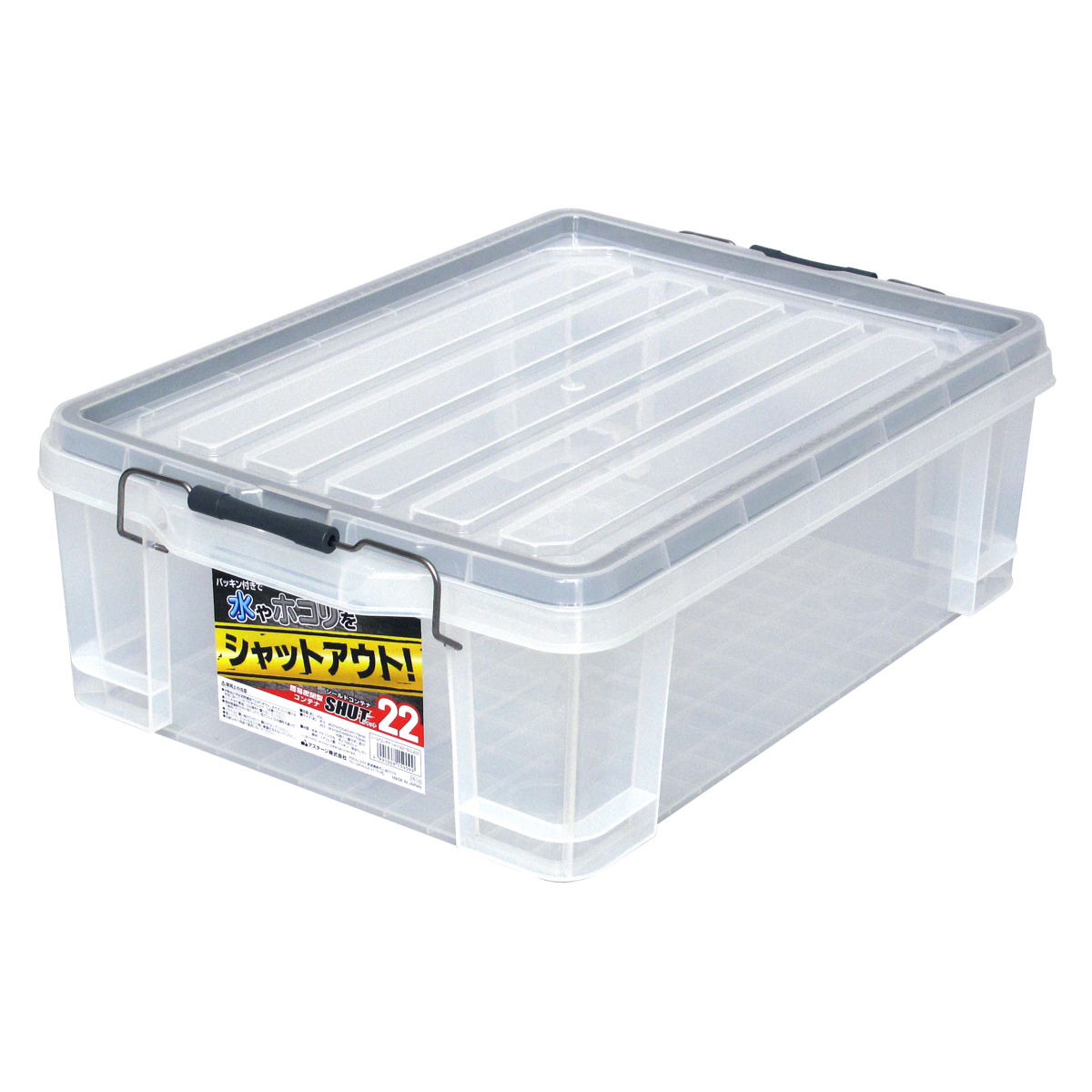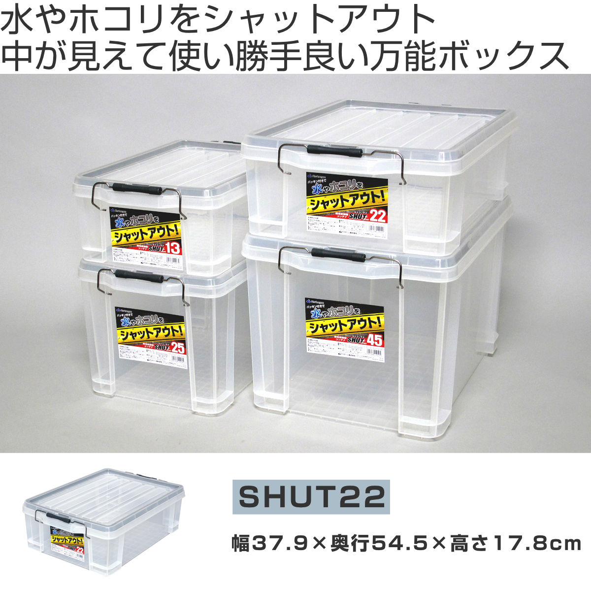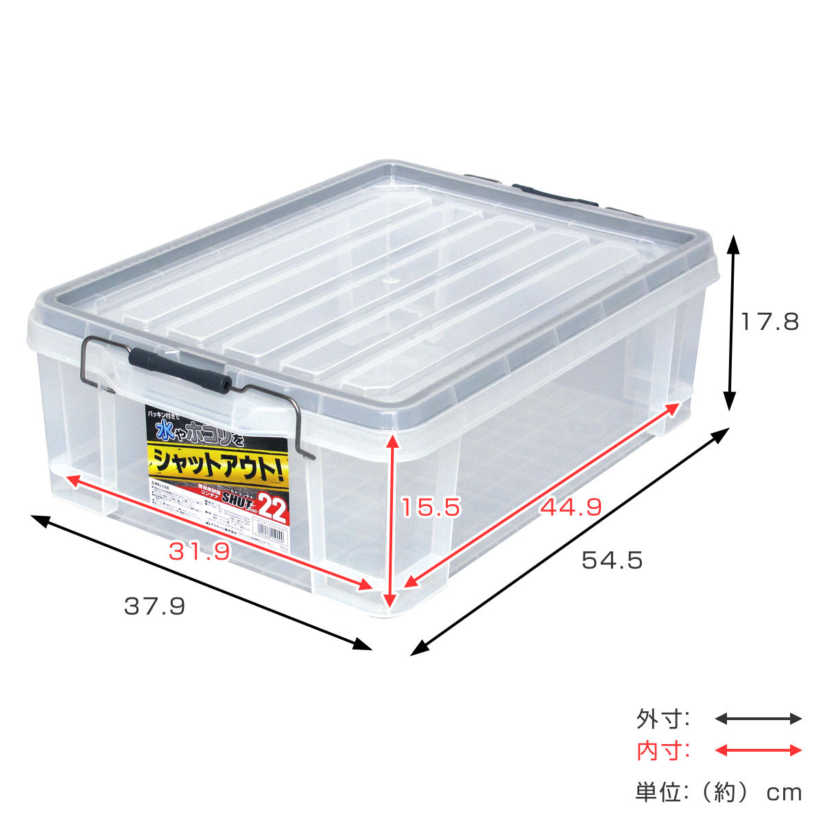 収納ボックス シールドコンテナ シャット22 幅37.9cm×奥行54.5cm×高さ17.8cm ( 収納 フタ付き プラスチック 収納ケース ボックス 深型 半透明 日本製 小物収納 小物入れ ロック ロック機能 アウトドア コンテナ コンテナボックス )