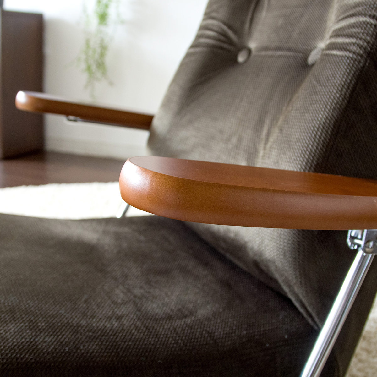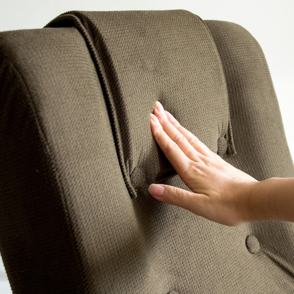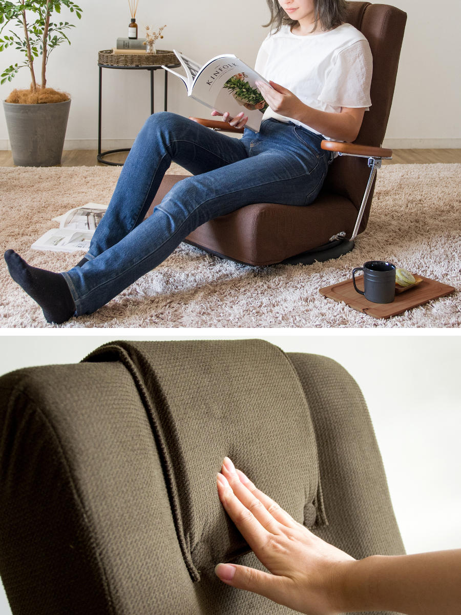 組み立てから生地張り、組付け、検品までを国内工場で職人が一つひとつ丁寧に仕上げています。細部まで行き届いた品質管理により、日常使いでも安心して長く使える座椅子です。