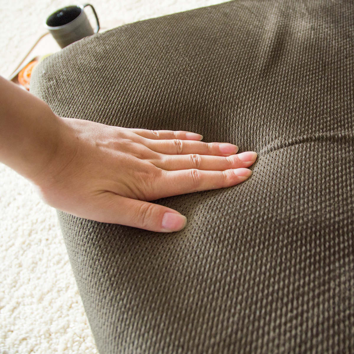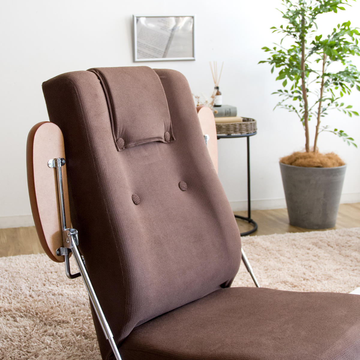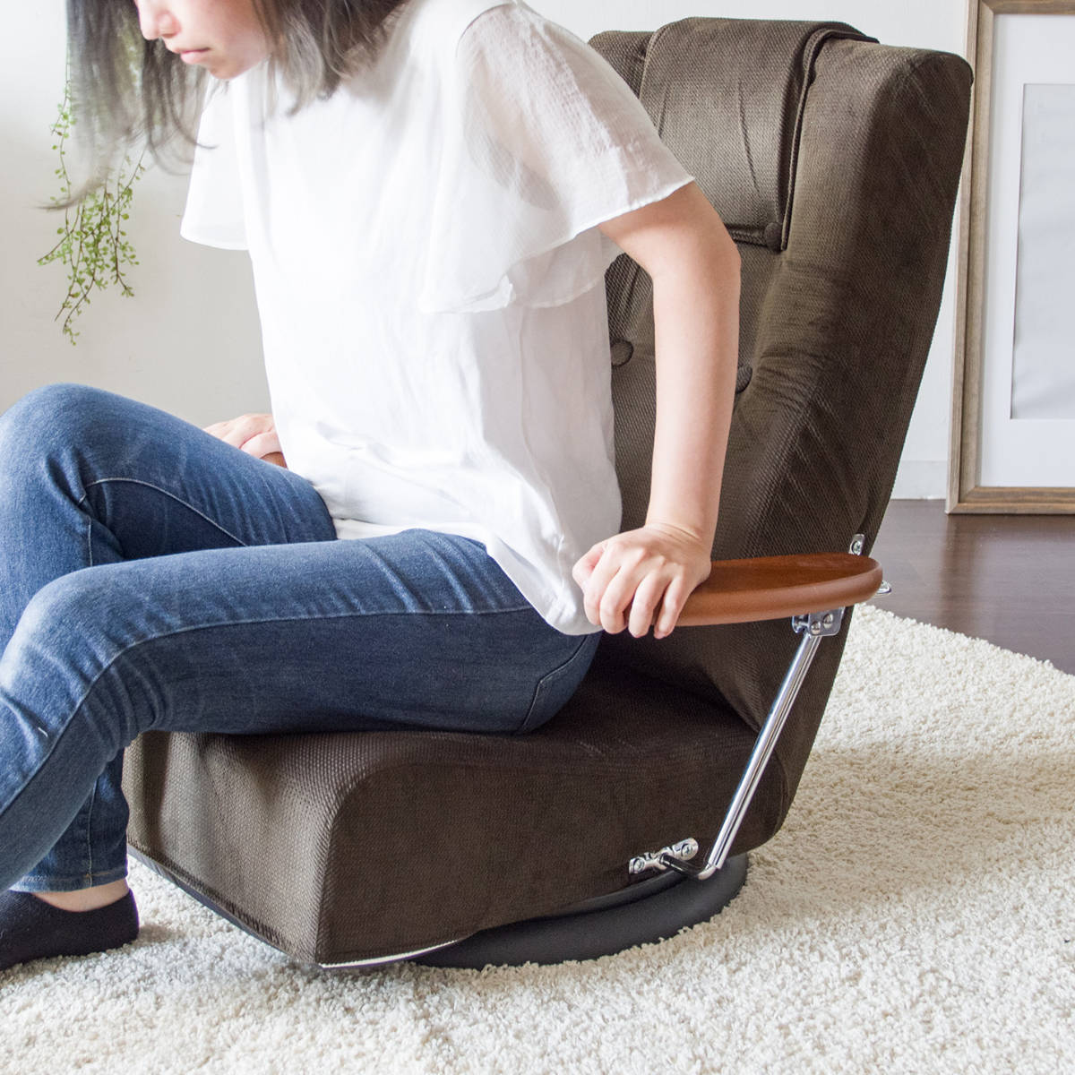 組み立てから生地張り、組付け、検品までを国内工場で職人が一つひとつ丁寧に仕上げています。細部まで行き届いた品質管理により、日常使いでも安心して長く使える座椅子です。