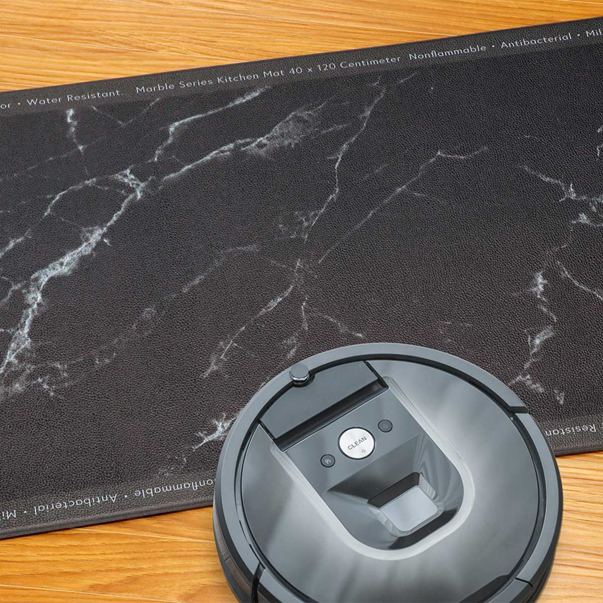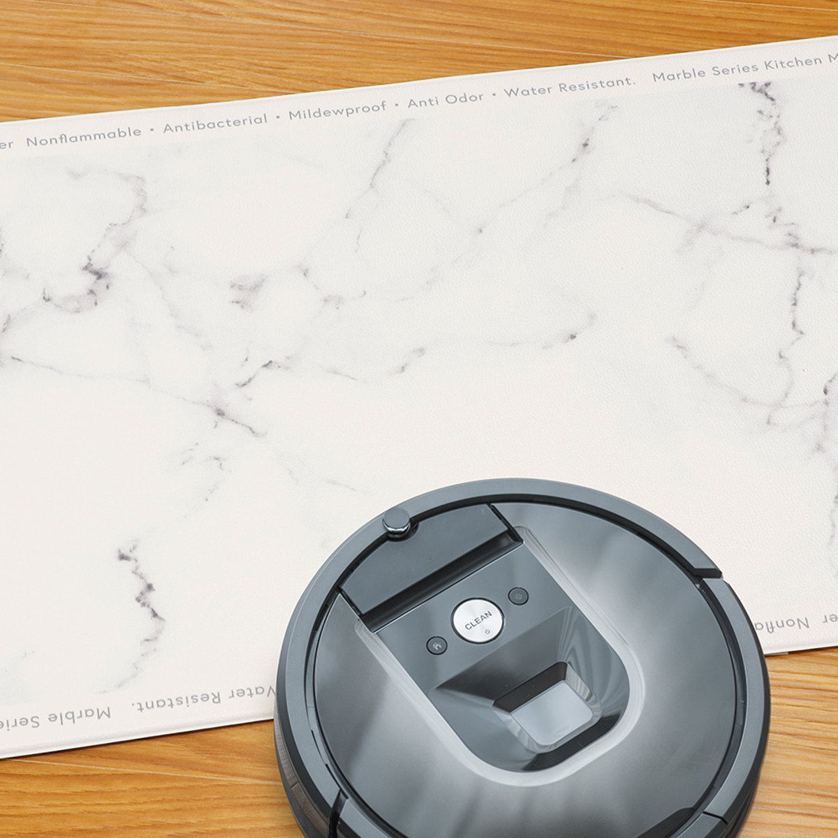 フチがなだらかに加工されているため、ロボット掃除機にも対応しており、お掃除も快適です。裏面もPVC素材のため、拭くだけでお手入れができます。滑りにくい仕様になっているので、掃除機もスムーズに使えます。