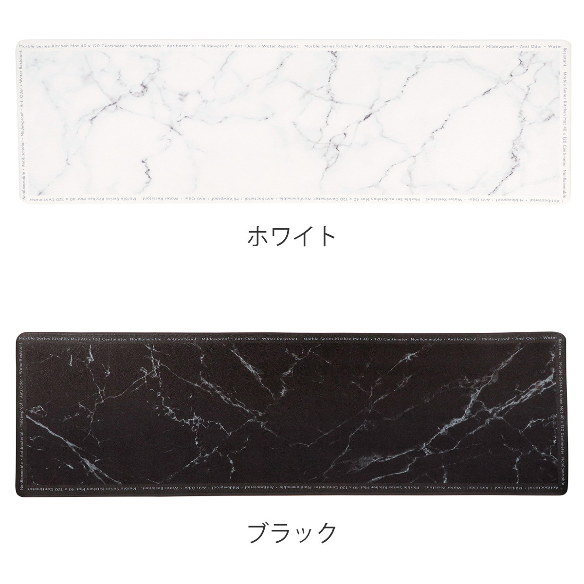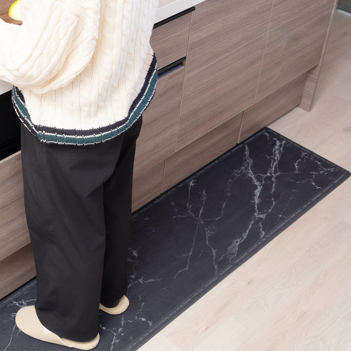 キッチンマット MARBLE KITCHEN マット 40×120cm ( 台所マット キッチン PVC 拭ける 抗菌 防臭 防炎 防カビ 洗濯不要 ズレない 傷防止 汚れ防止 お手入れ簡単 もちもち やわらかい クッション マーブル ) 【ブラック】