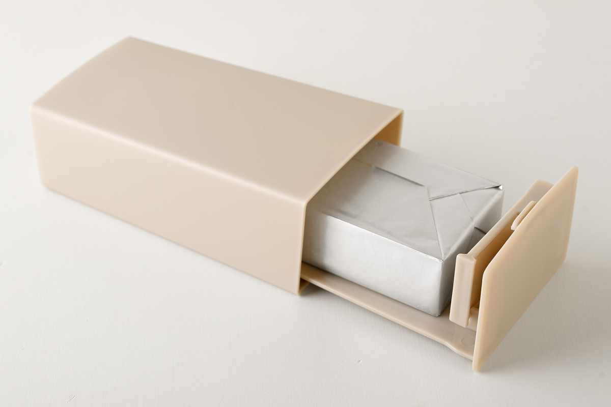 本体は引き出し式でバターが取り出しやすく、フタを外す手間がないため必要な量をスムーズに取り分けられます。銀紙ごと保存できるので、新鮮さを保ったまま使えるのも魅力です。