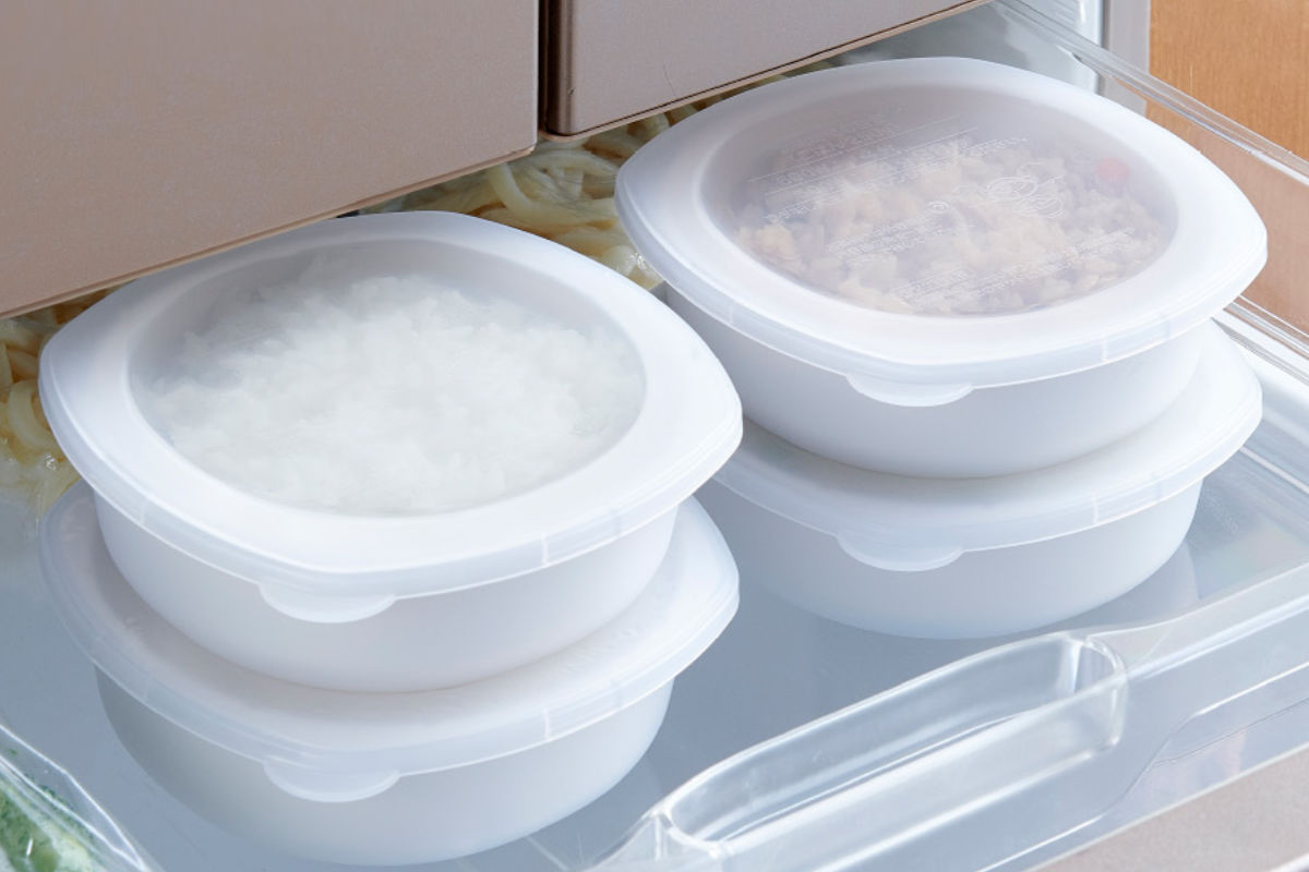 ●粗熱を取らずに炊き立てごはんを冷凍できる保存容器です。