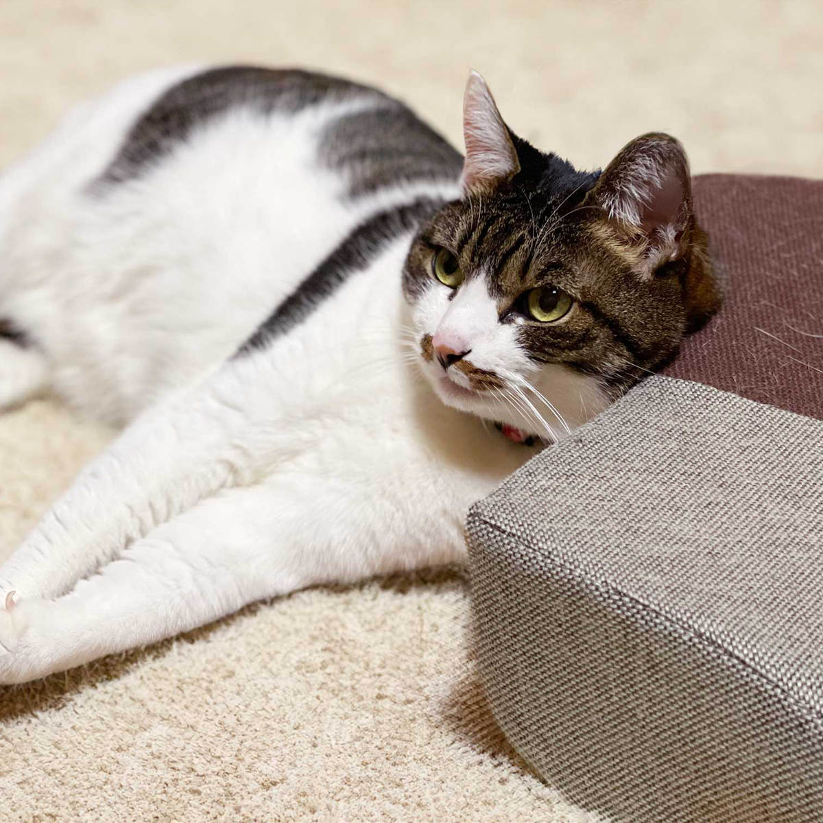 ●爪が引っかかりやすい生地と弾力あるウレタンで、爪とぎもベッドも快適に使えるクッションです。