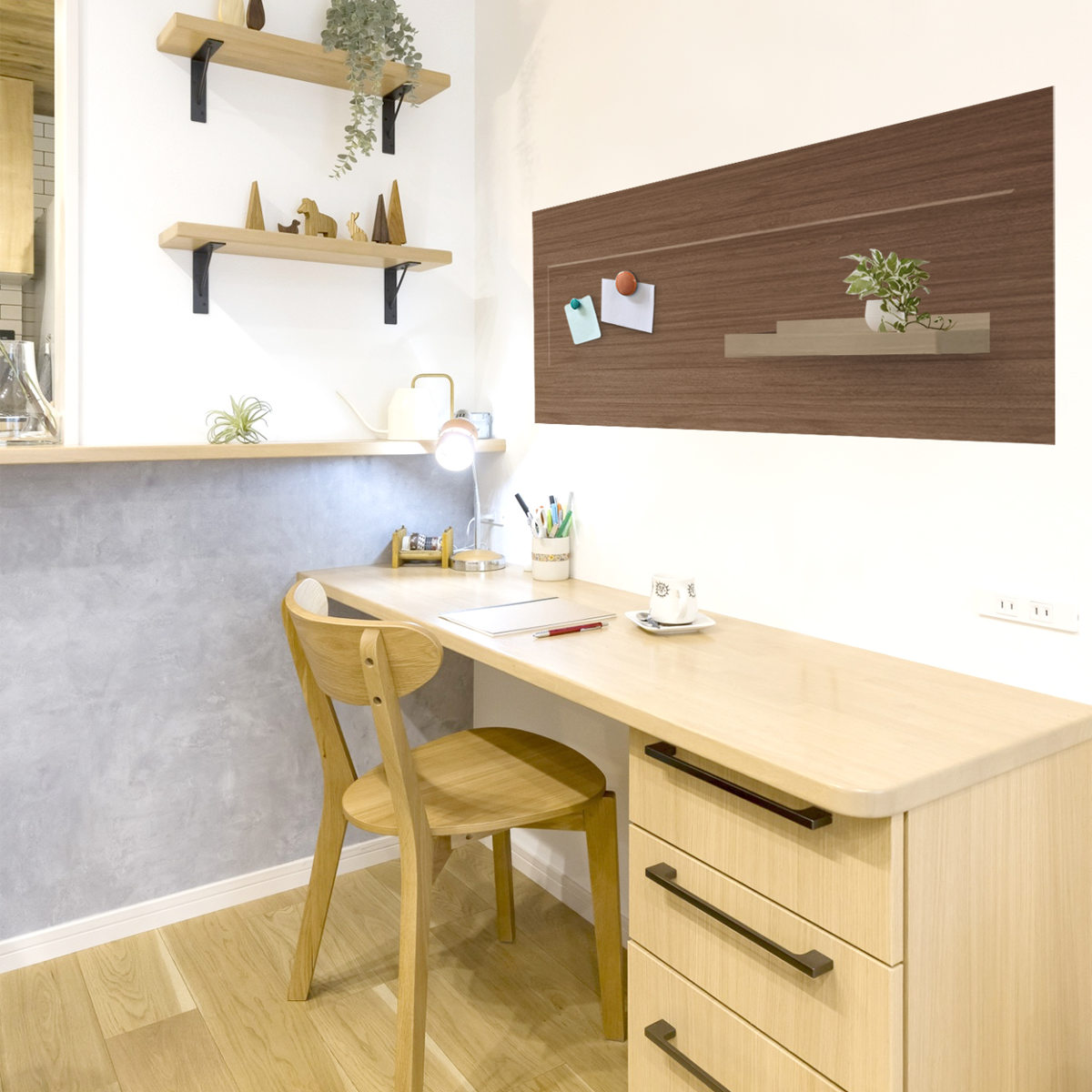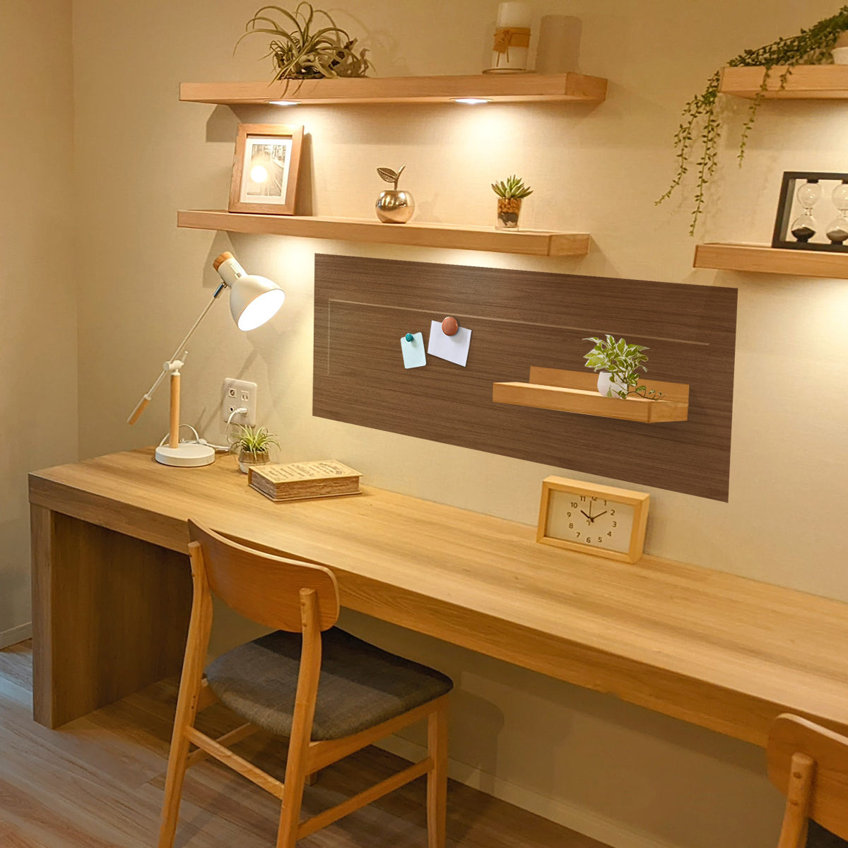 ワークスペースに貼れば、目の前がメモやプリントが貼れる掲示板になり、マグネットがつかない冷蔵庫にも使えます。洗面所やダイニングで壁面収納、リビングや玄関で飾り棚など、アイデア次第で使い方が広がります。