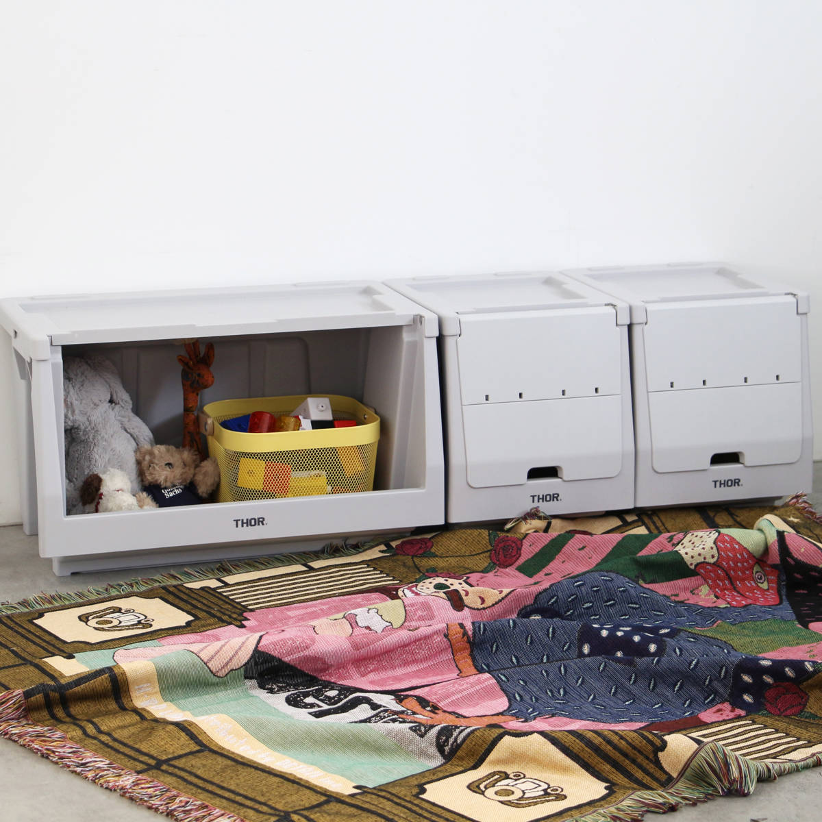 ●本体、蓋、扉を組み合わせて自分好みの棚を作ることができるTHORスタッキングシェルフコンテナ 20L 上蓋のみです。