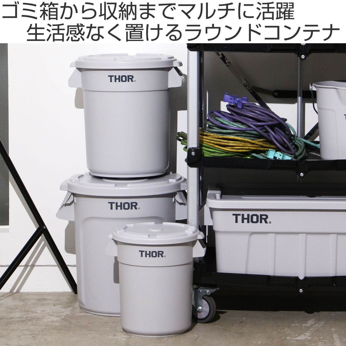 ゴミ箱 THOR ROUND CONTAINER DC 23L ( ごみ箱 23リットル 本体のみ 収納 ツールボックス シンプル ランドリーボックス プラスチック 洗える ラウンドコンテナ ) 【ライトグレー】