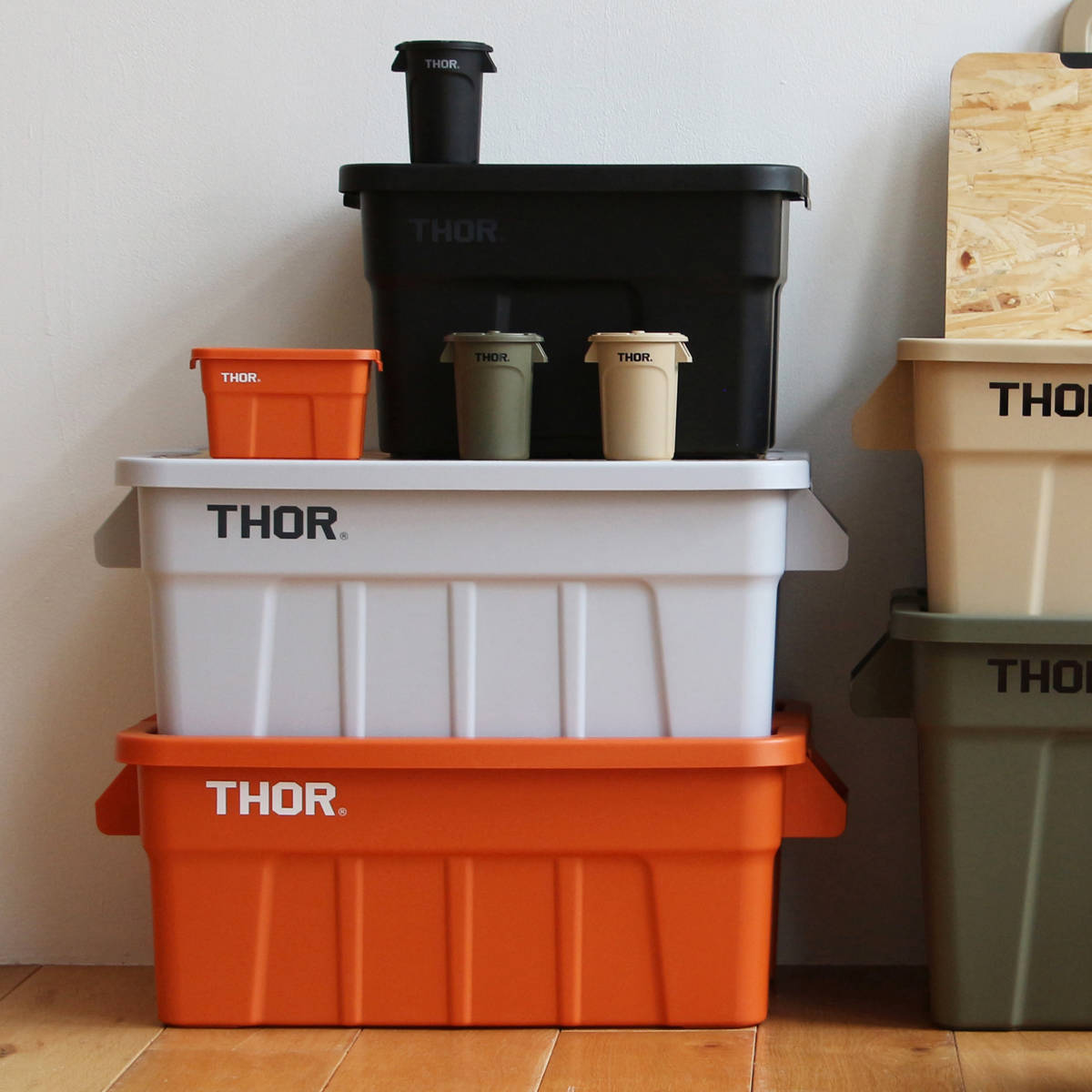 ボックスの側面とフタにはTHORのロゴが入っています。無骨で洗練されたデザインが、収納アイテムでありながらインテリアとしても映えるポイントです。