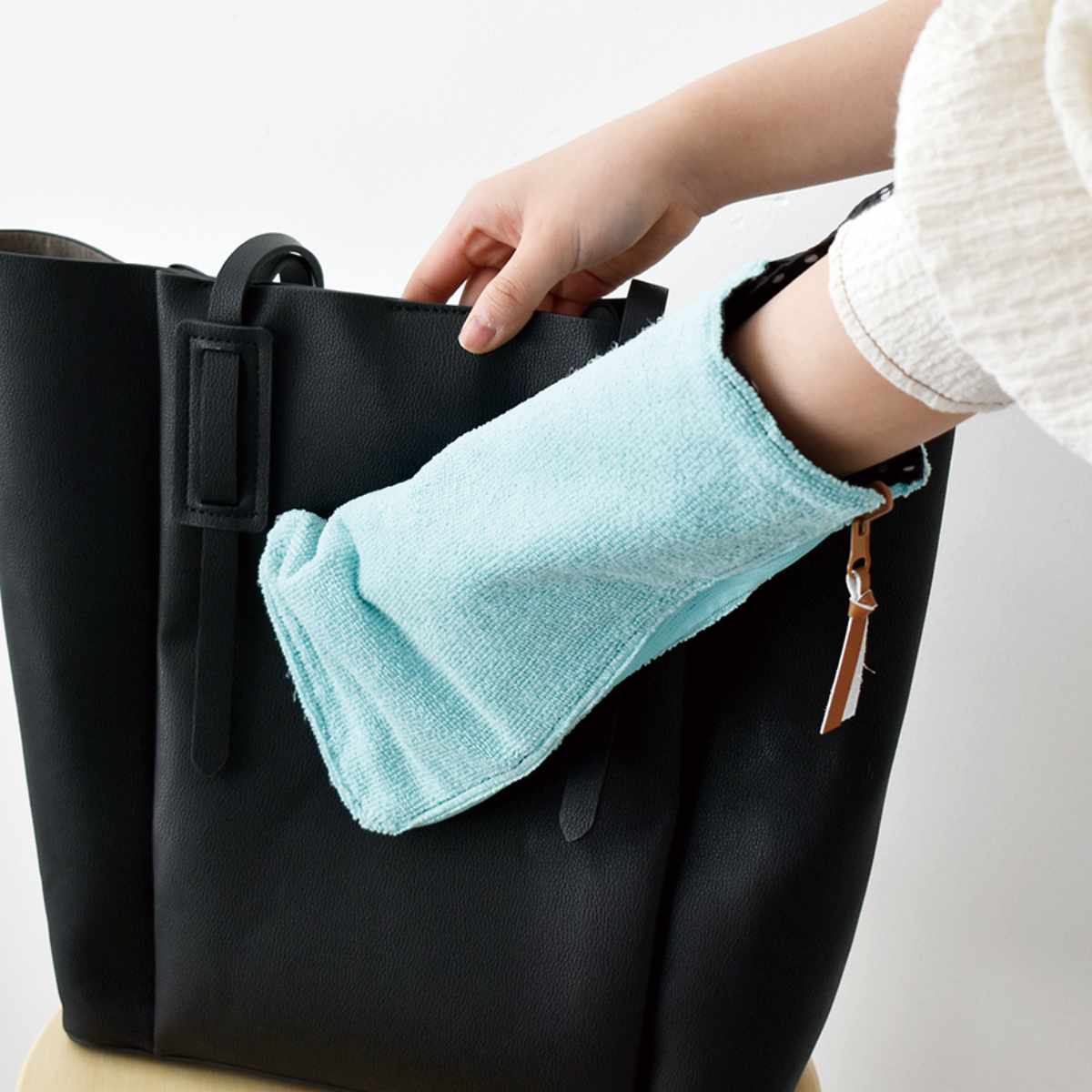 内側はマイクロファイバーでしっかり吸収するので、ハンドタオルでは拭き切れないカバンについた水滴もサッと吸収します。