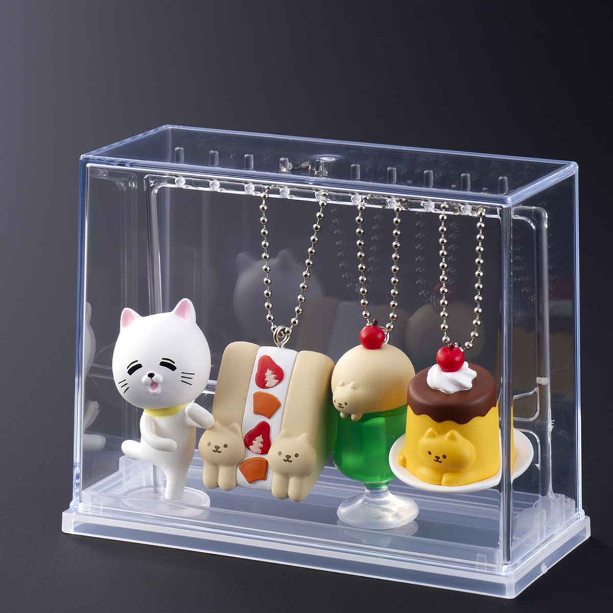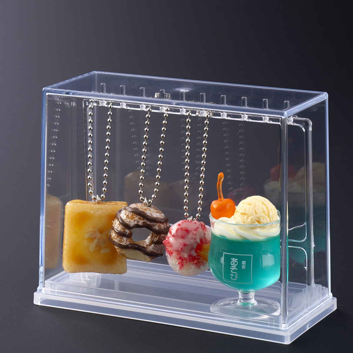 飾りにくかったミニチュアキーホルダーやカプセルトイを、ボールチェーンで掛けてきれいに展示できるディスプレイケースです。細かなグッズも正面から見やすく、コレクションの魅力を引き立てます。