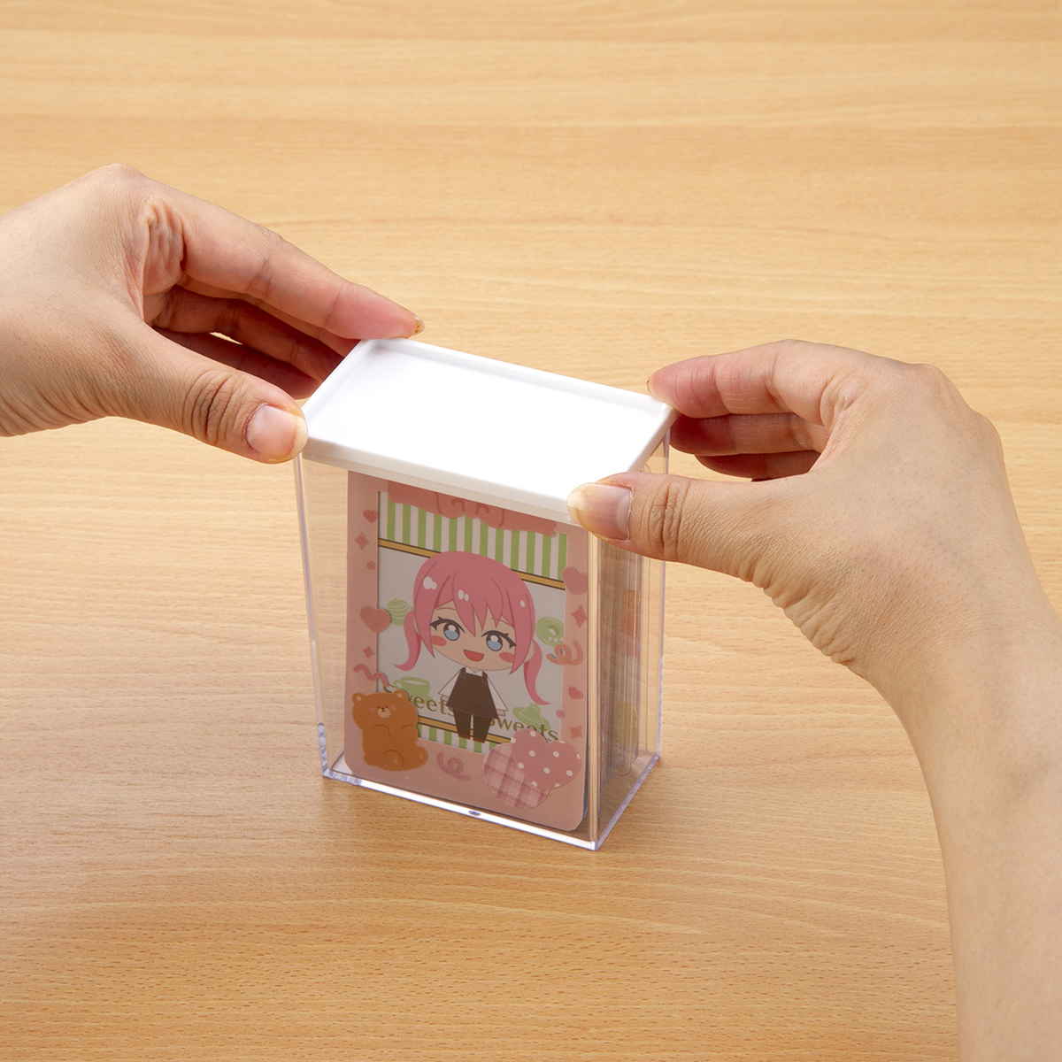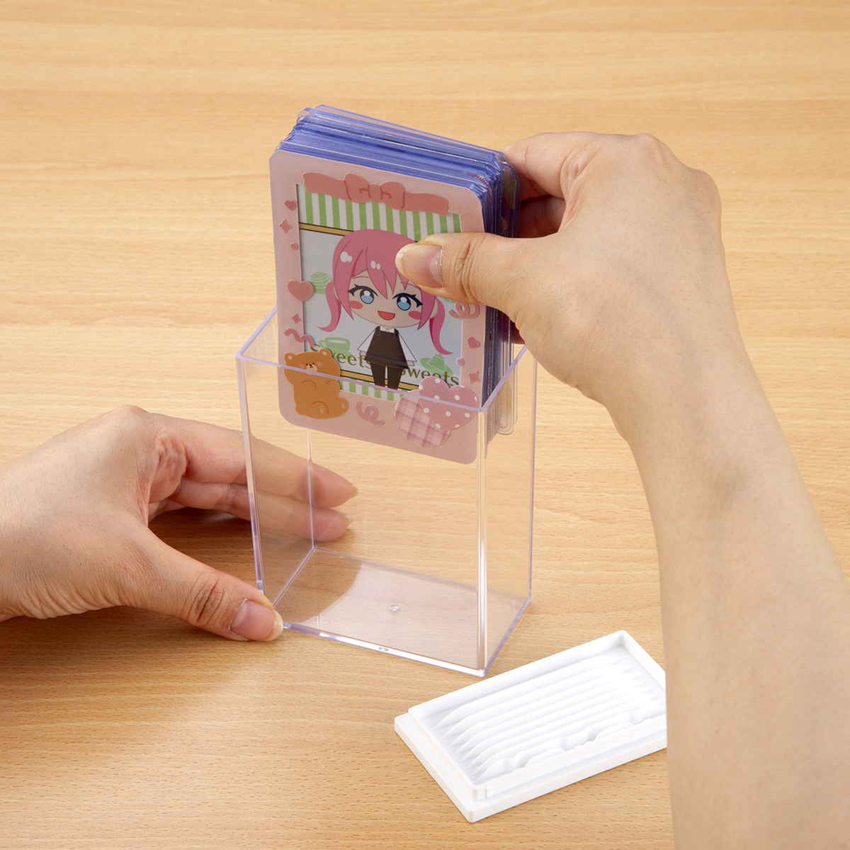 デコレーションした硬質ケースのほか、アクリルスタンドなどのディスプレイにも使えます。カード以外の小物展示にも活躍します。