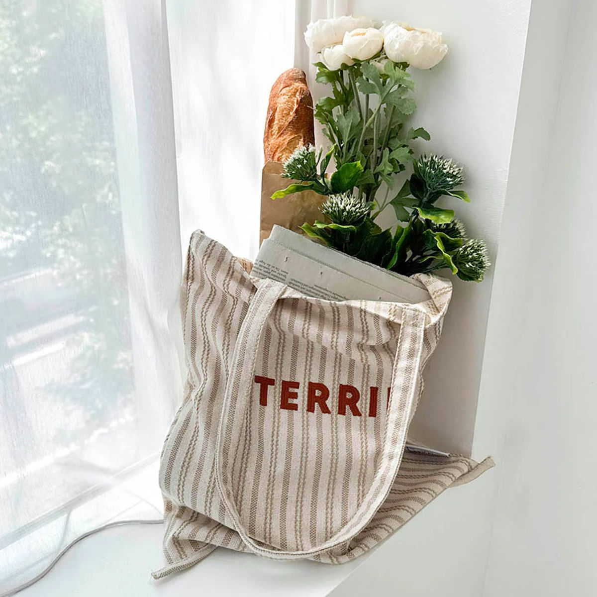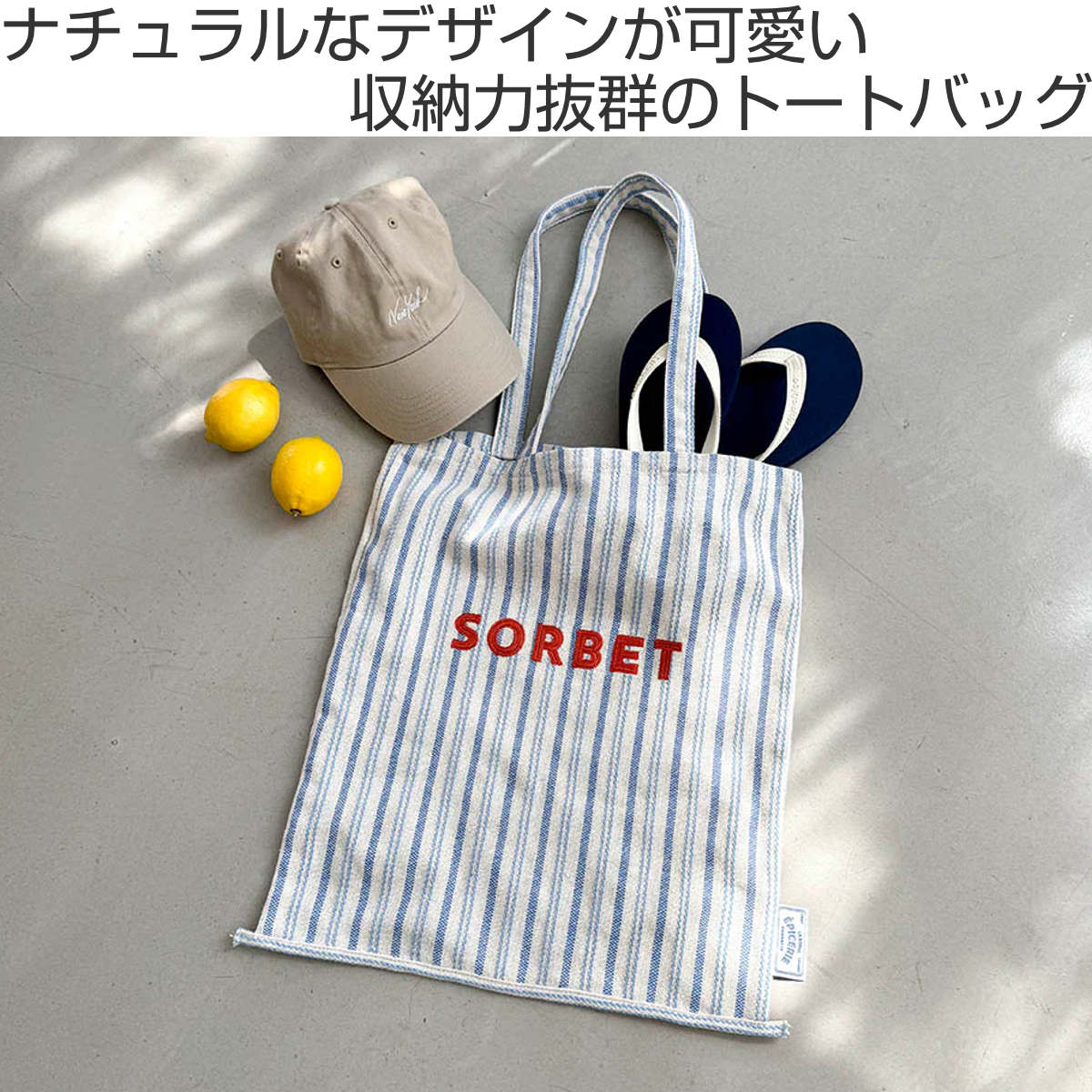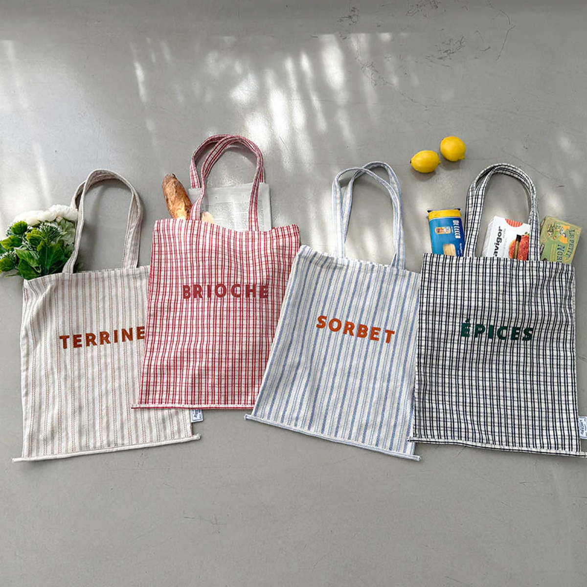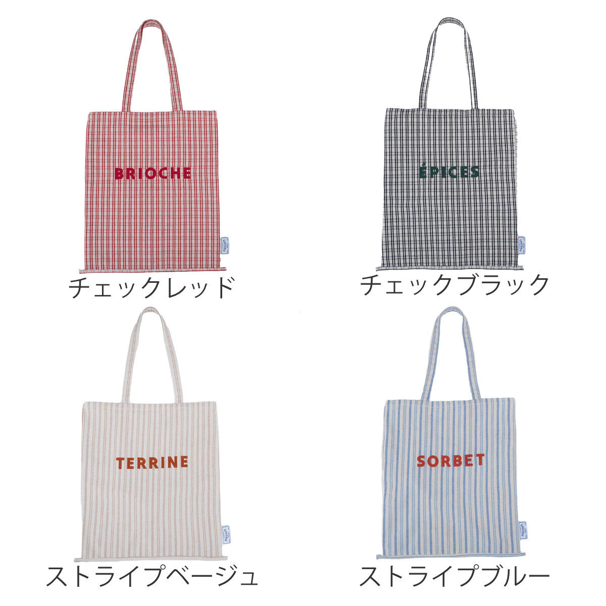 パリの食材店をイメージしたトートバッグです。荷物が多い日のお出かけや、普段使いのサブバッグとしてもぴったりなサイズ感です。