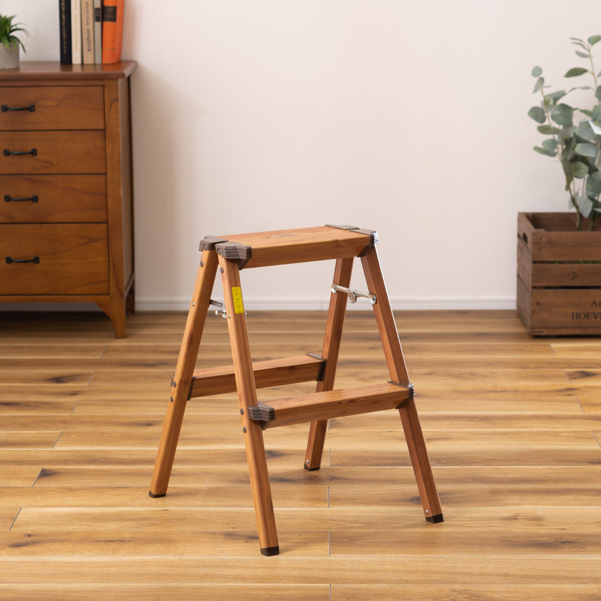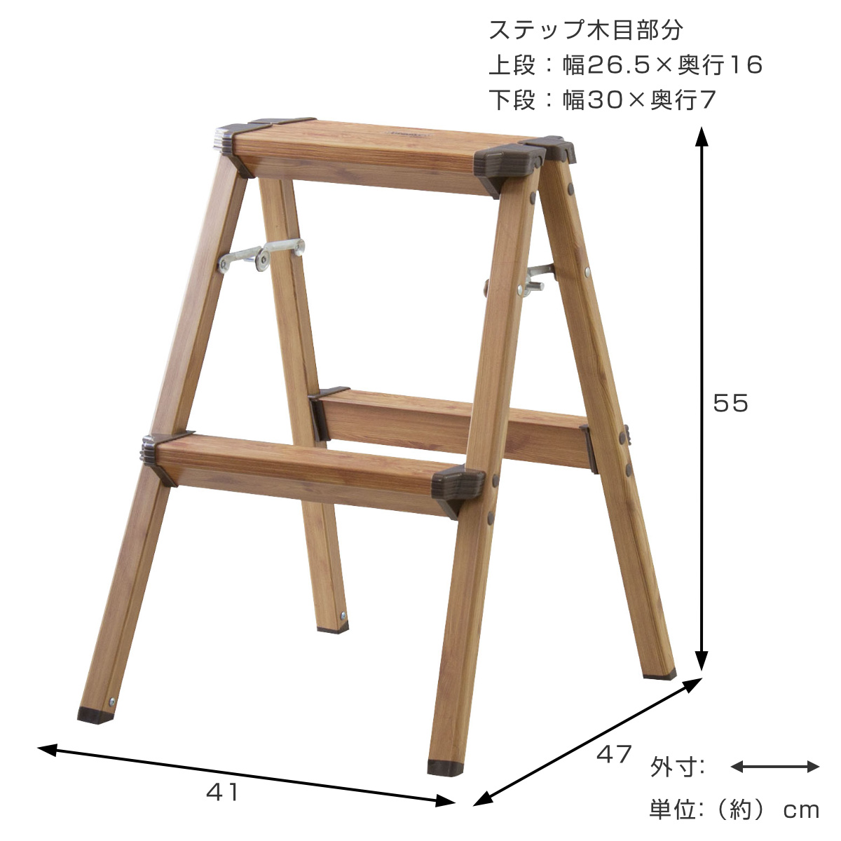 踏み台 2段 脚立 ステップスツール ( 折りたたみ アルミ 軽量 木目調 踏台 耐荷重100kg 完成品 アルミ脚立 軽い 腰掛け 洗車 DIY 掃除 折り畳み 花台 ディスプレイ スツール ゴム脚付き アウトドア キャンプ )
