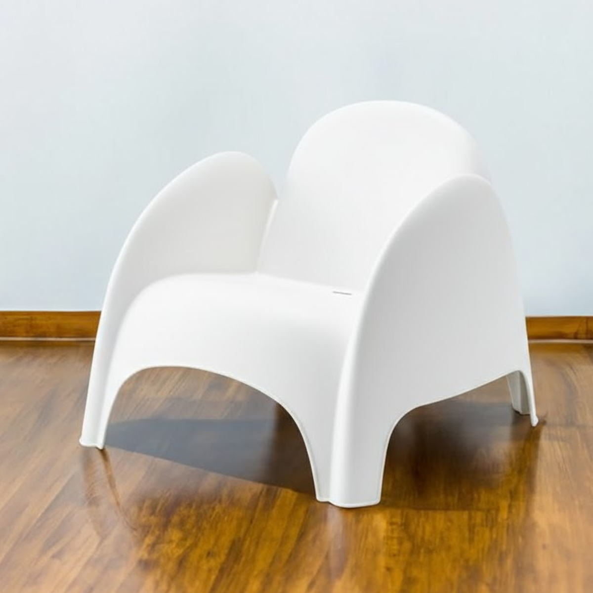 ●丸みのあるフォルムが印象的なラウンジチェア(ホワイト)です。