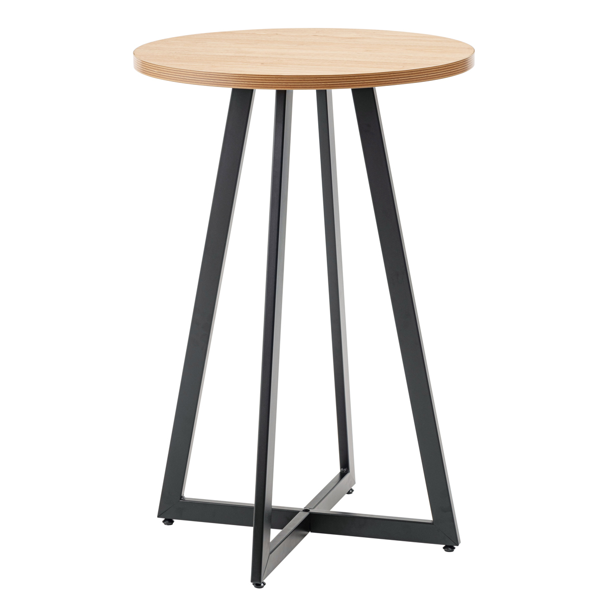 温かみのある木目調天板とブラックスチール脚を組み合わせたハイテーブルです。異素材のコントラストが空間を引き締め、カフェやバーのような雰囲気を演出します。