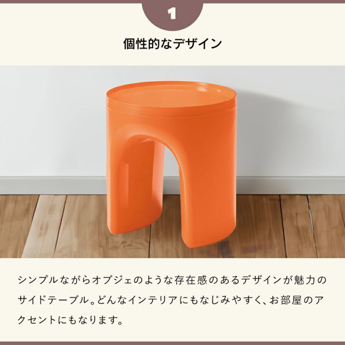 シンプルながらも目を引くフォルムが印象的なサイドテーブルです。置いてあるだけで空間の雰囲気を高め、インテリアのアクセントとして活躍します。