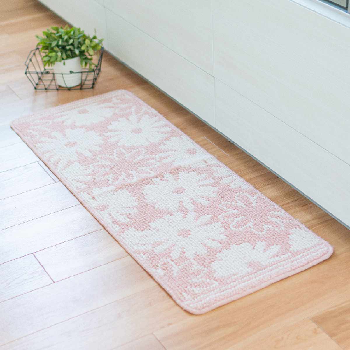 キッチンマット シュクレ 45×120cm ( 45cm 120cm 洗える 台所マット キッチン マット キッチン用マット すべり止め ミニキッチン キッチンラグ カーペット 滑り止め 長方形 汚れ防止 キッチン床 おしゃれ かわいい ひとり暮らし ) 【ピンク】