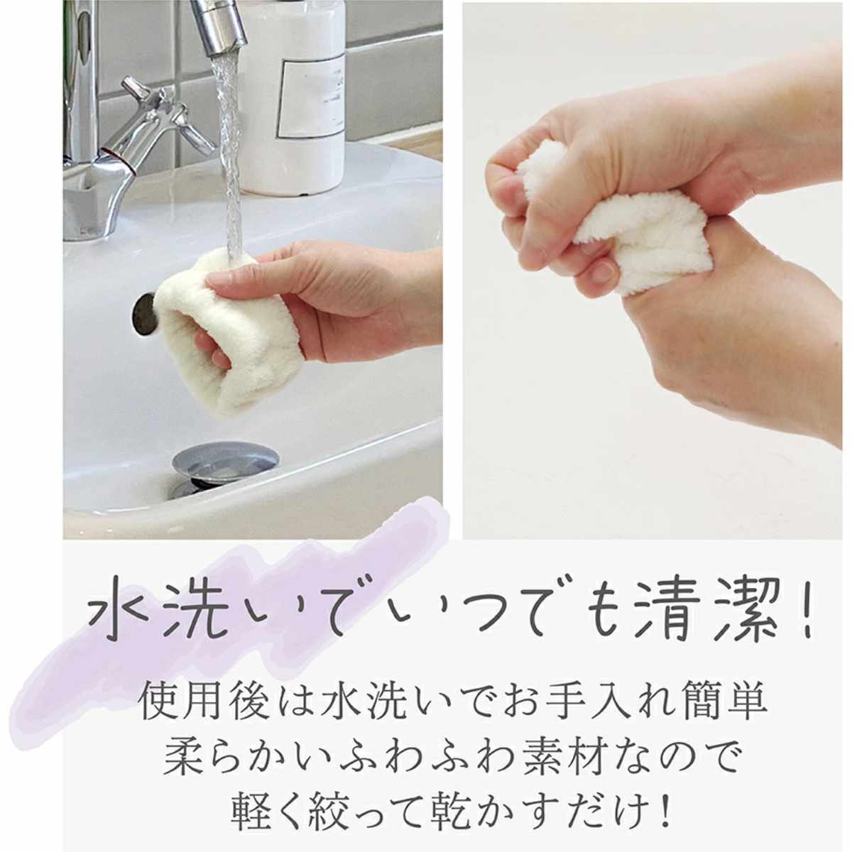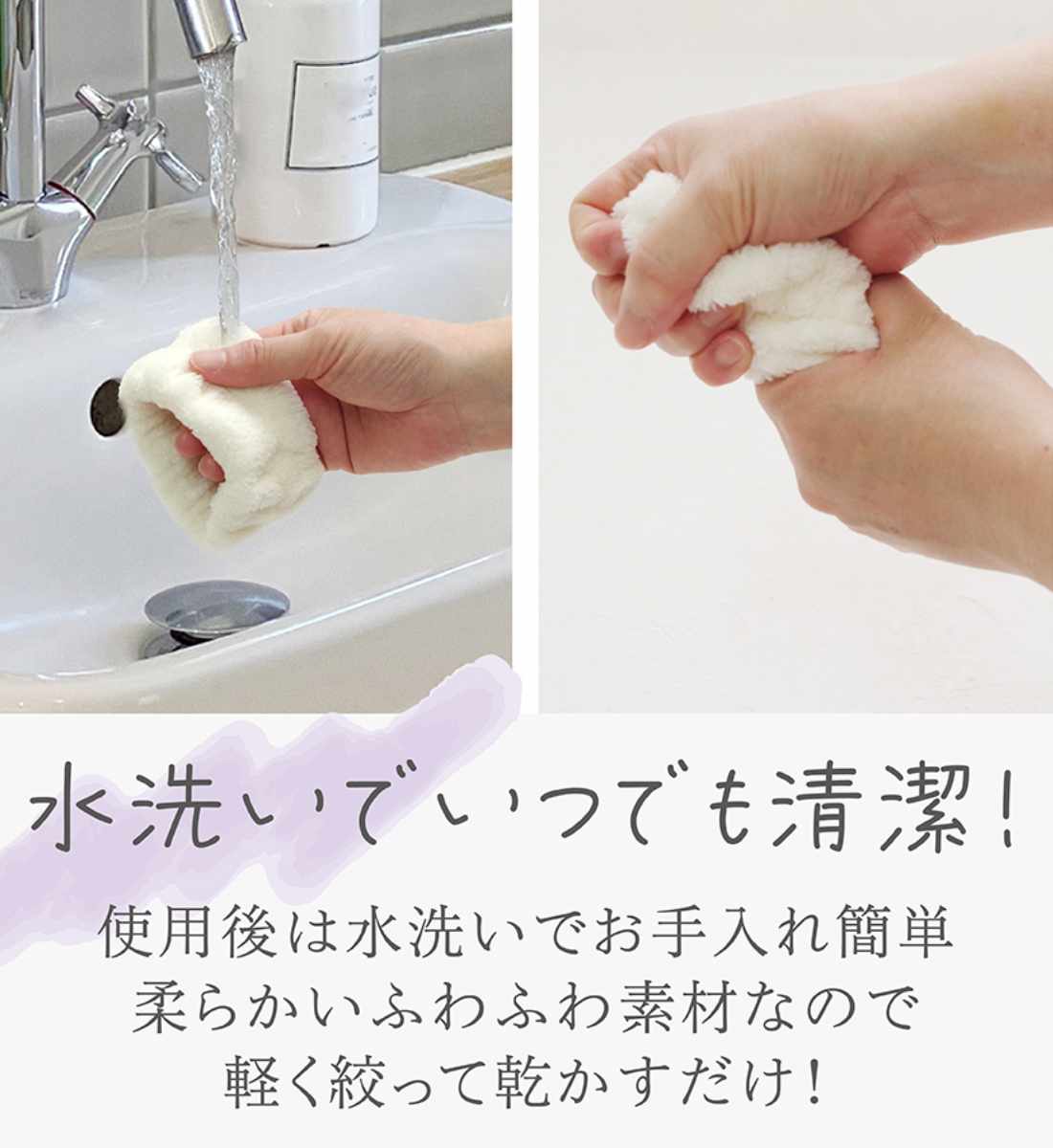 使用後は水洗いで汚れを落とせます。柔らかい素材なので軽く絞って乾かすだけで簡単にお手入れできます。