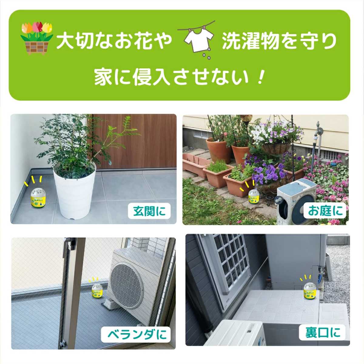 ●ベランダやお庭、玄関、勝手口など、気になる場所に置くだけで手軽に設置できます。