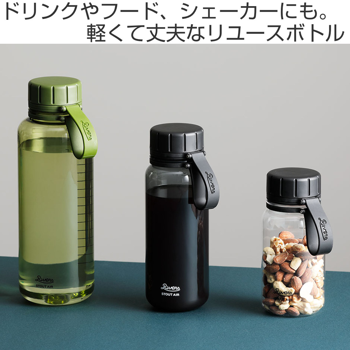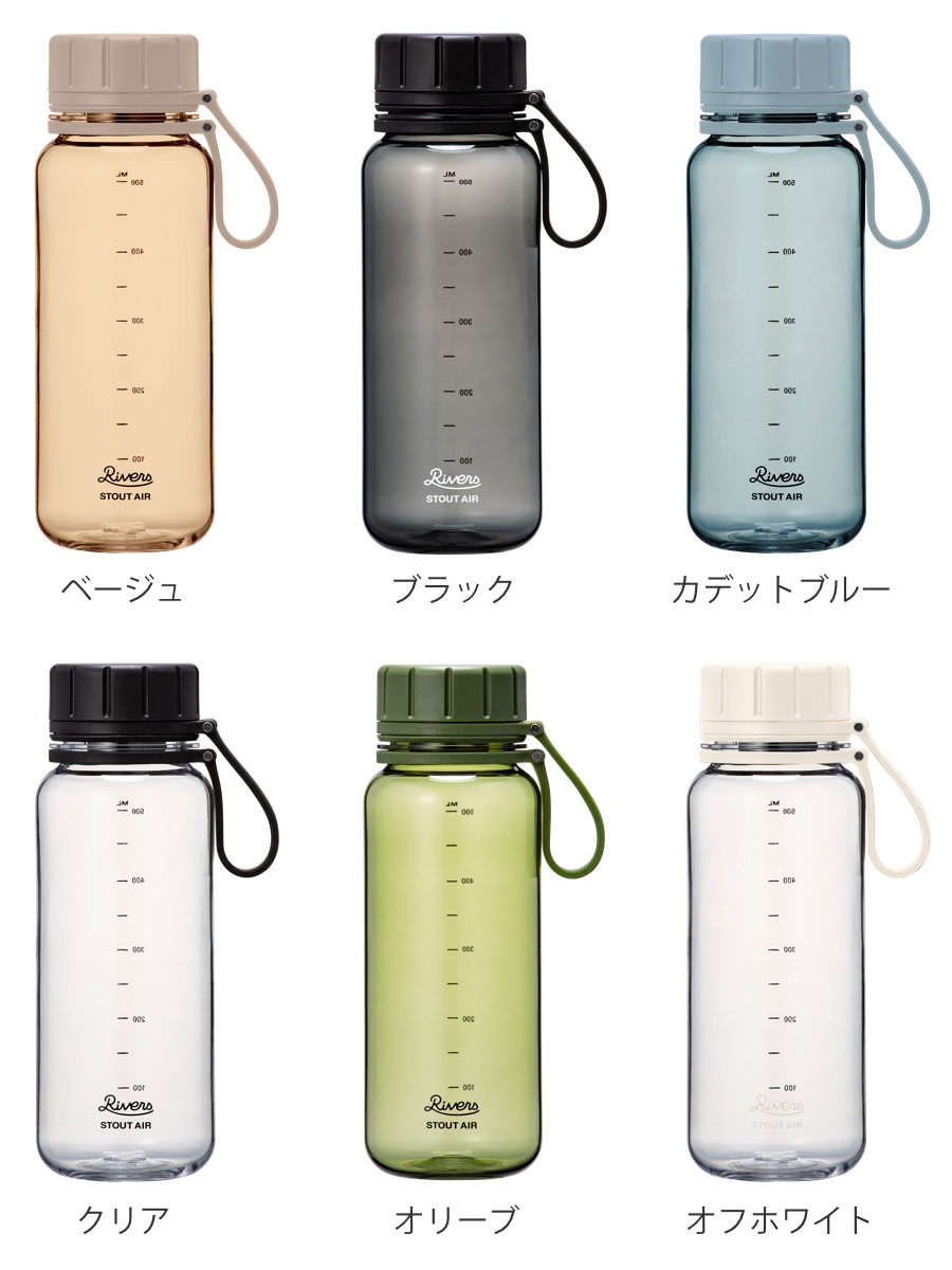 Rivers リバーズ 水筒 スタウトエア 550E ( 550ml 直飲み 軽量 ボトル クリアボトル ウォーターボトル マイボトル プラスチック メモリ付き BPAフリー 持ちやすい おしゃれ シンプル ) 【オリーブ】