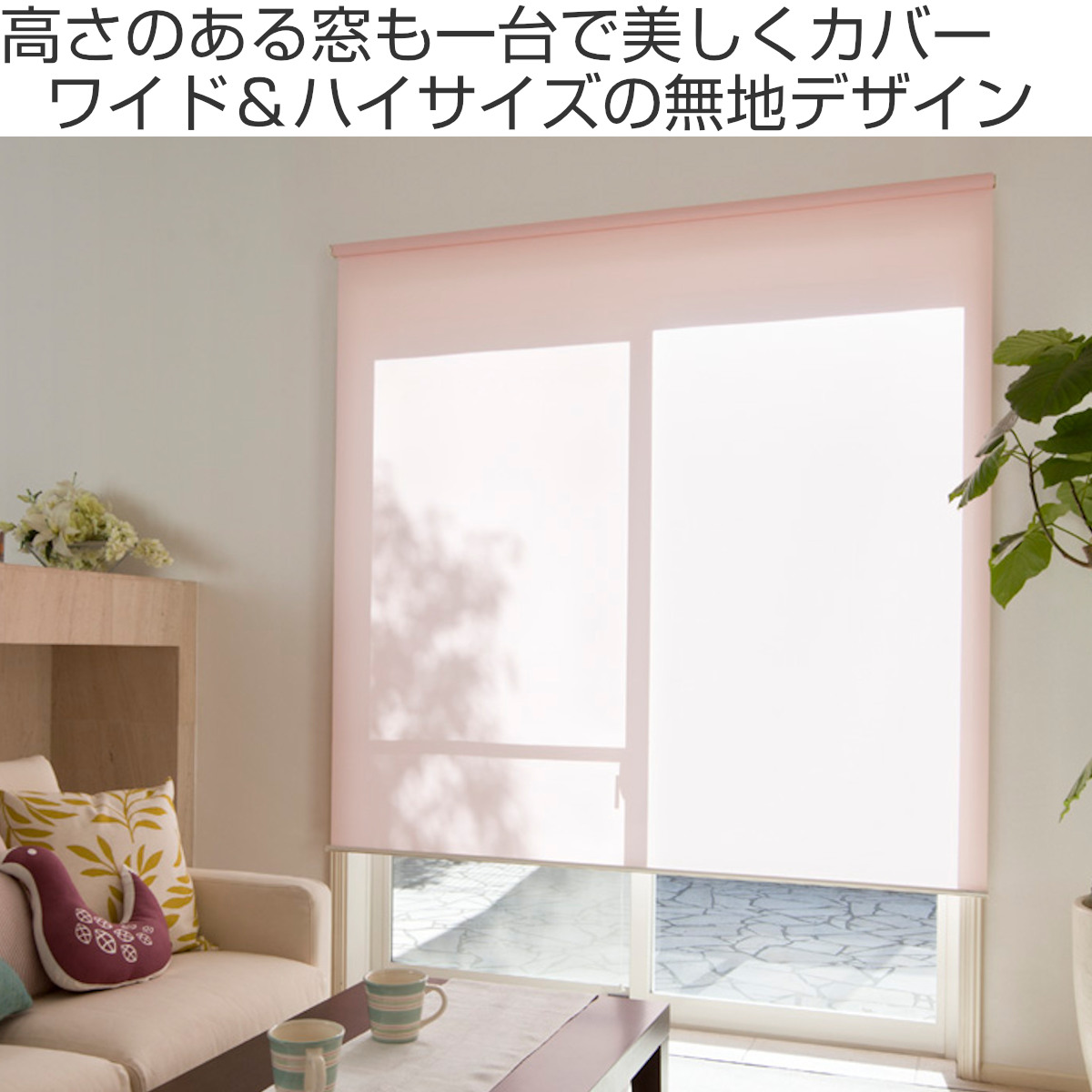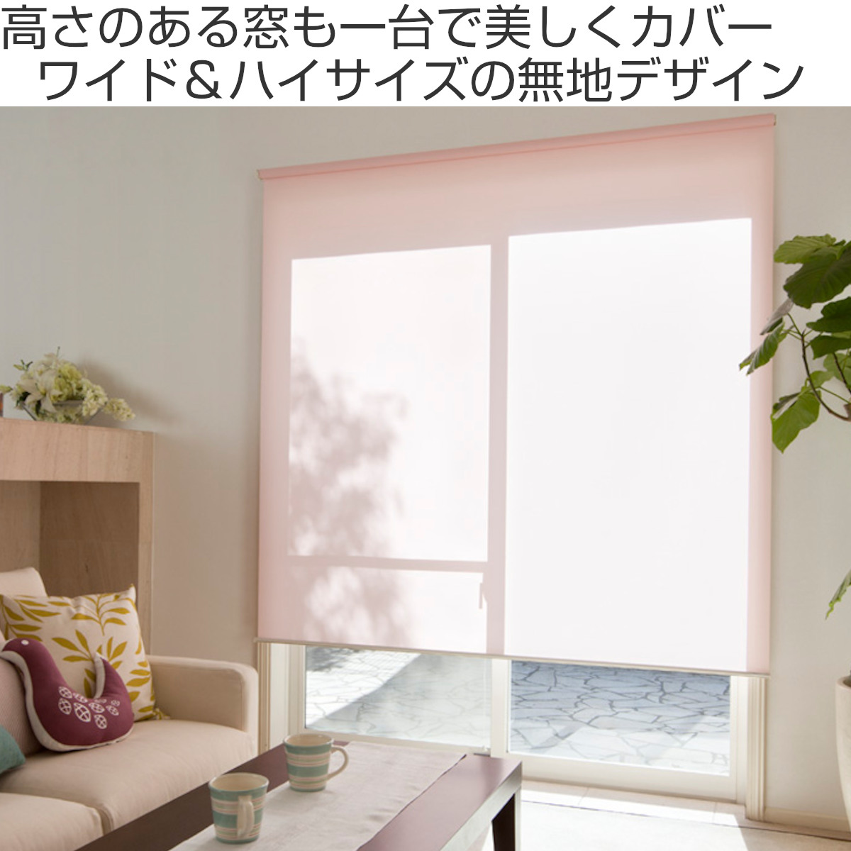 掃き出し窓や天井高のある窓など、カーテンでは重たく見えがちな大きな窓も1台ですっきり覆える、幅135cm×丈220cmのロールスクリーンです。無地ならではのやさしい印象で、リビングやダイニングを広く、整った空間に演出します。