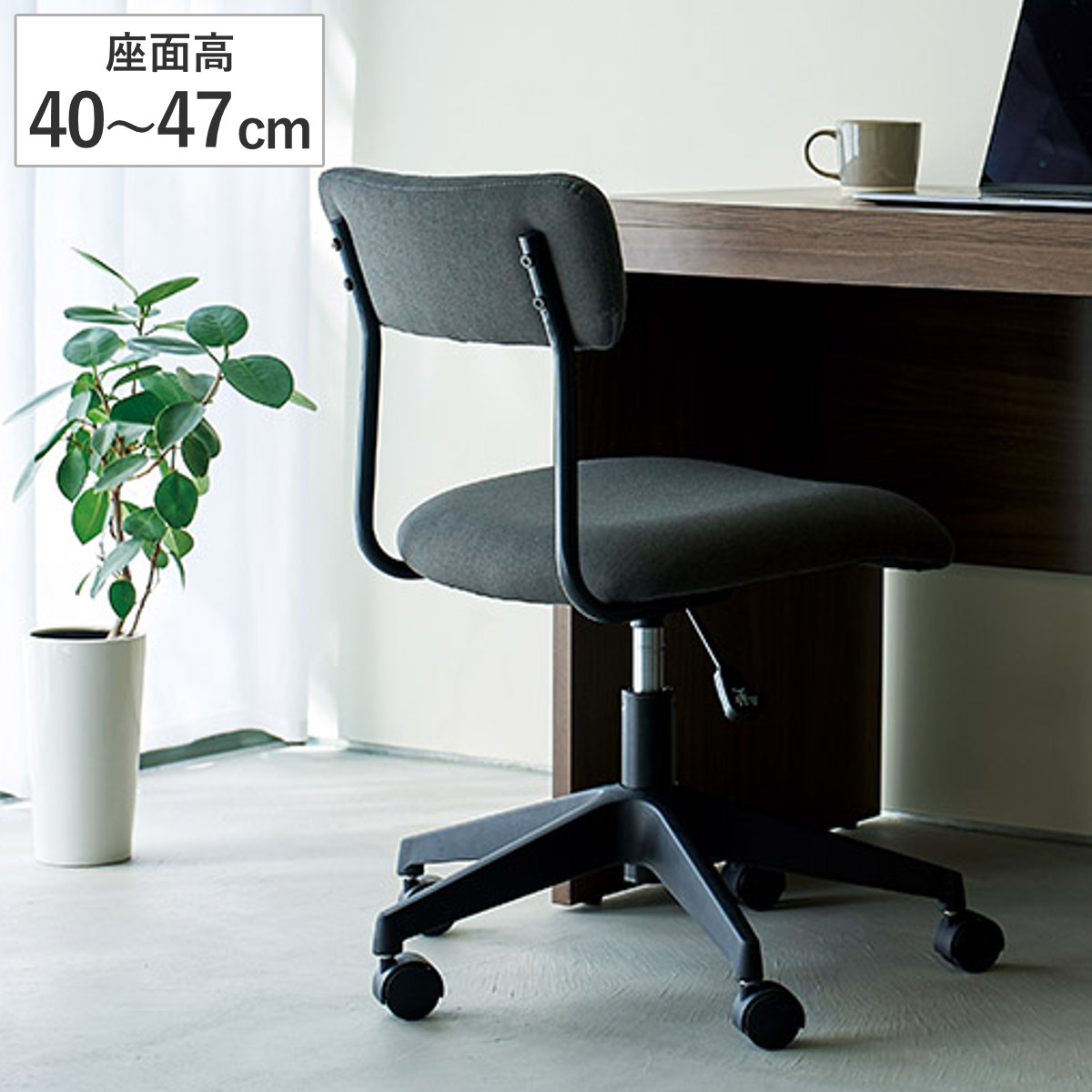 オフィスチェア 座面高40~47cm キャスター付き 昇降式 高さ調節可能 ( パソコンチェア ワークチェア アームレス 肘なし 回転 オフィス デスクチェア PCチェア イス 椅子 学習椅子 勉強椅子 ファブリック ウレタン )