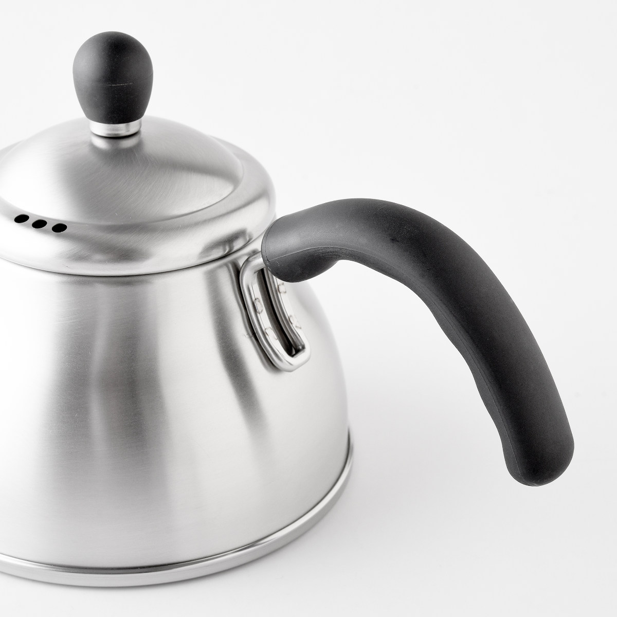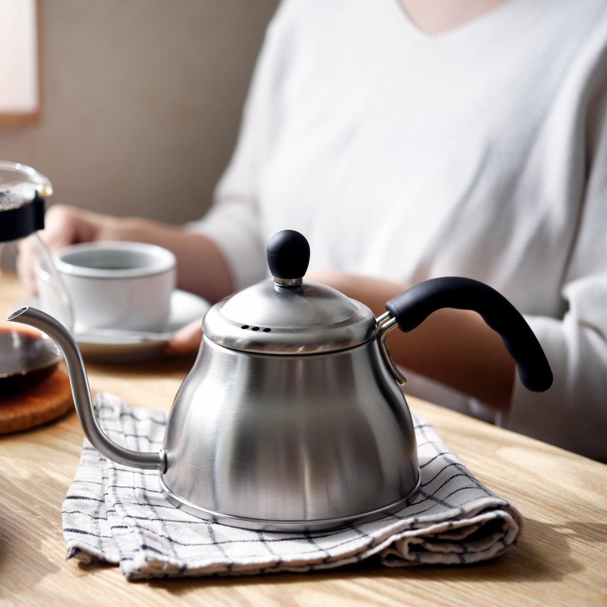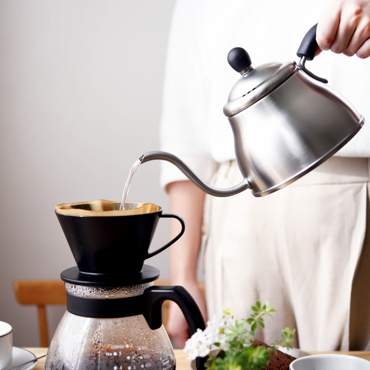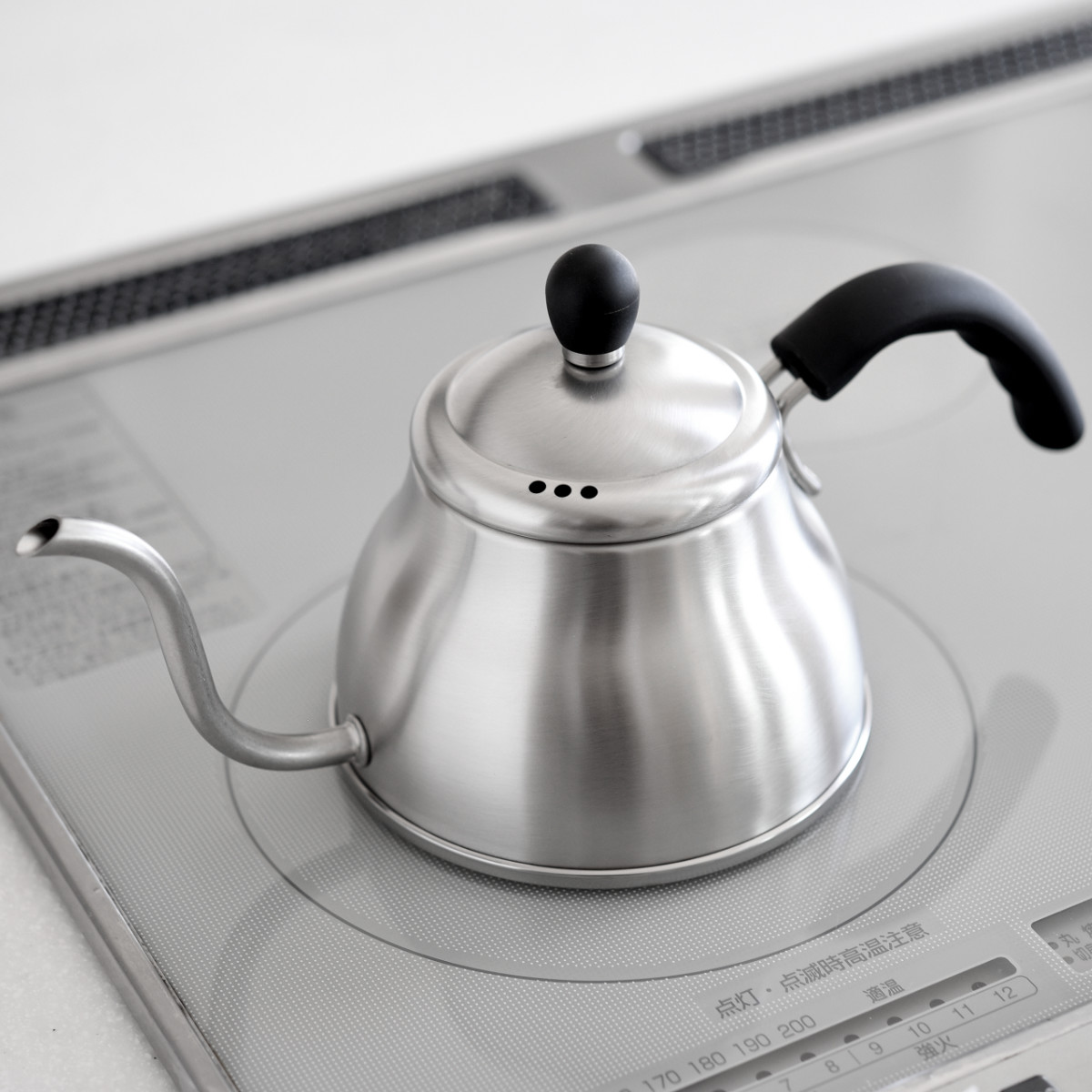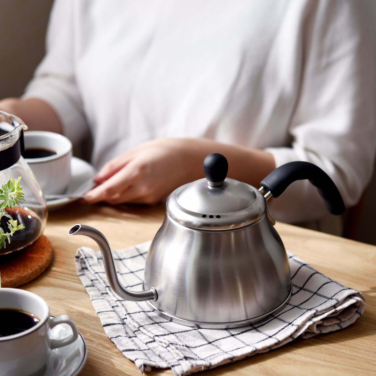 お湯を一定の量で静かに注ぐことができ、微妙な湯量調節も自在に行える細口です。狙った位置にゆっくりと注げるため、ハンドドリップコーヒーに適しています。