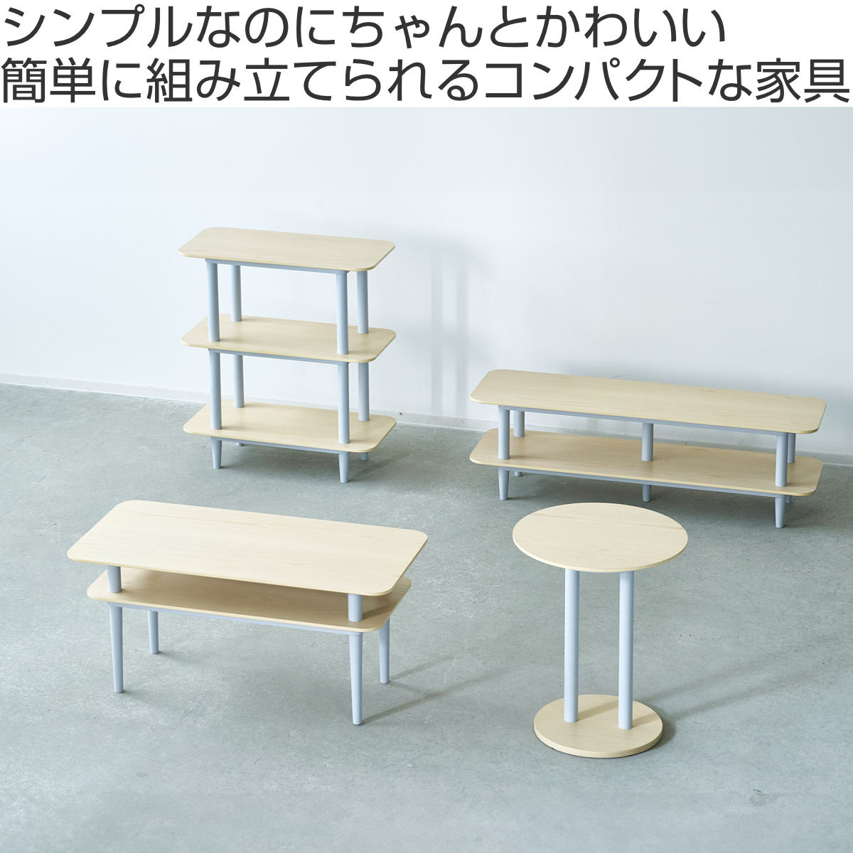 ![]() ローテーブル 幅80cm | ![]() サイドテーブル 幅40cm | ![]() テレビ台 ~32型対応 幅100cm |