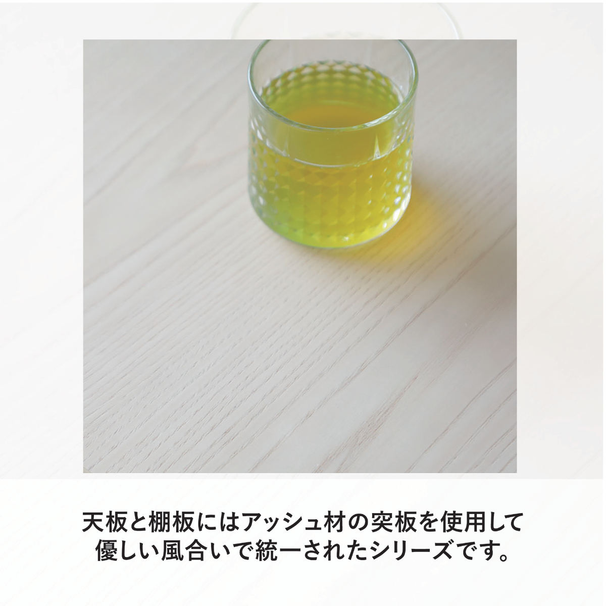 天然木アッシュ材の木目を楽しめる天板