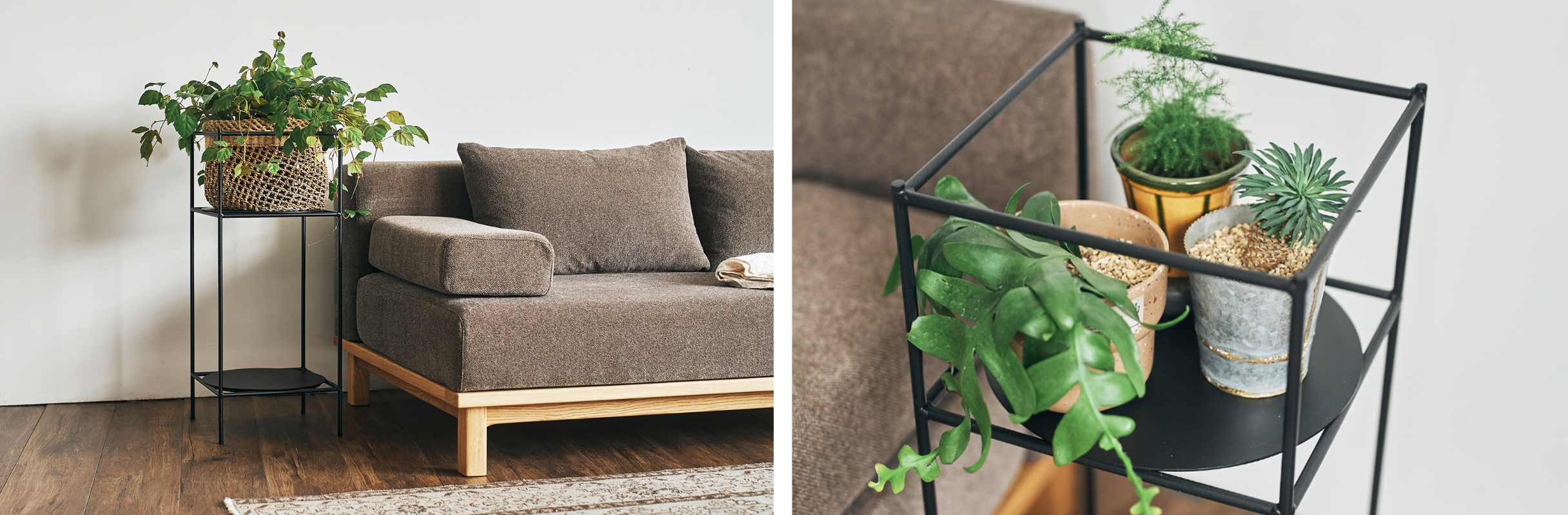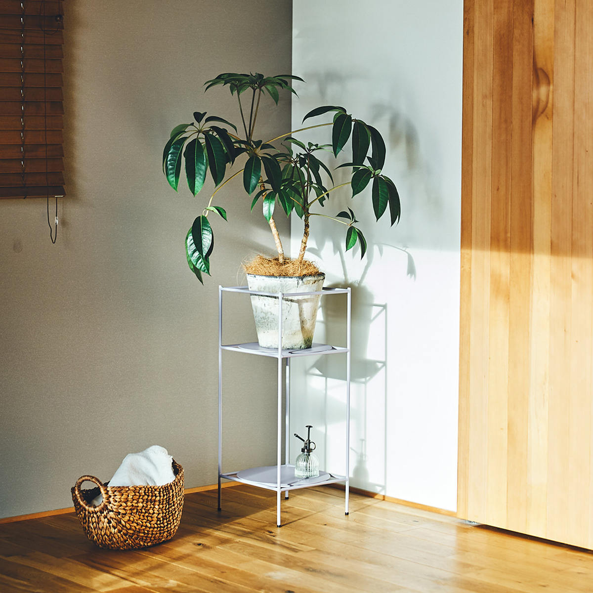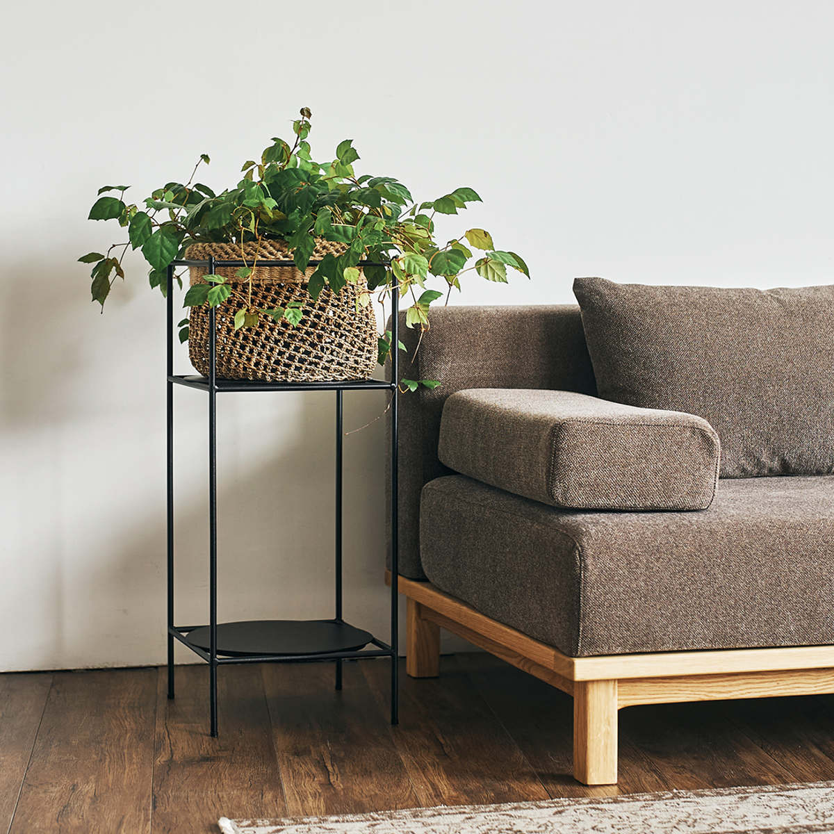 植物を飾るだけでなく、アルコール消毒液や日用品の定位置としても便利にお使いいただけます。無駄のないシンプルなデザインなので、暮らしの中で生活感を抑えながら実用的にも使えます。