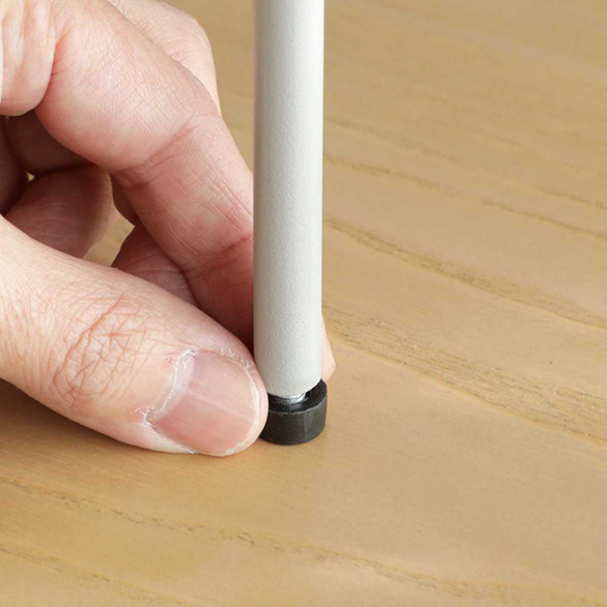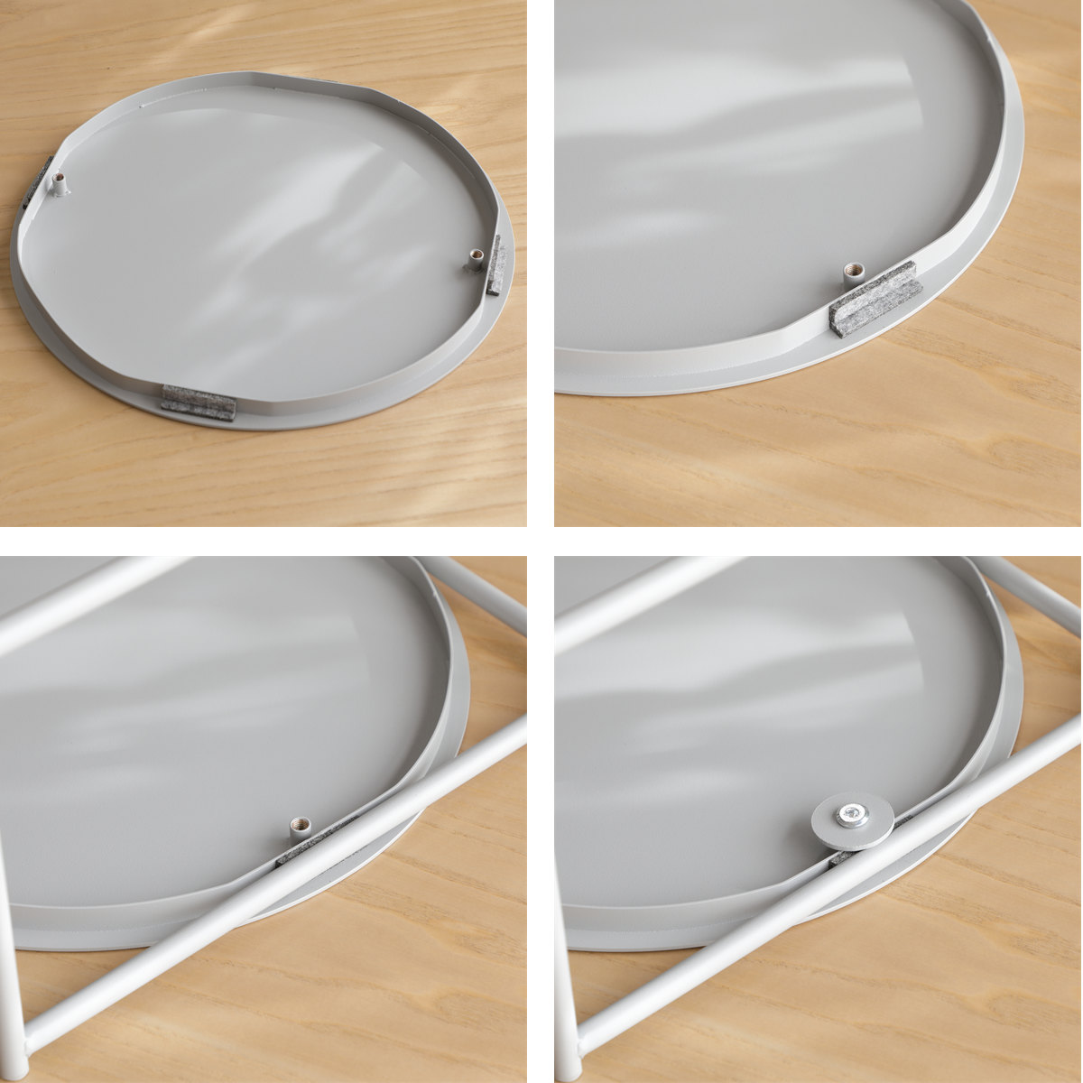 ネジで固定する仕様のため、使用中にズレにくく、安定感のある使い心地です。また、接地部分には保護用のフェルト付きなので、フレームや棚板へのキズを防ぎ、見えない部分まで配慮されたつくりになっています。