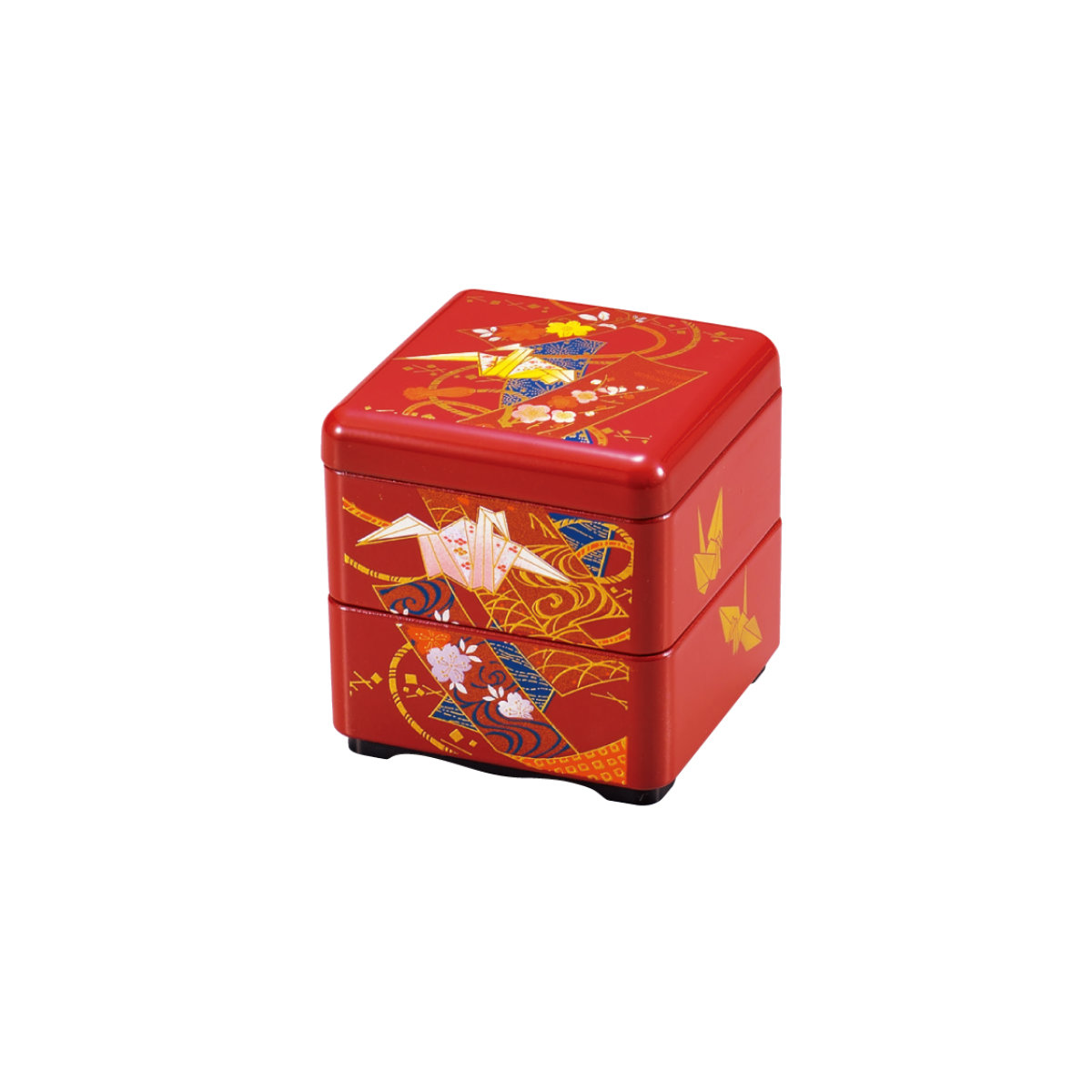 お重 ミニお重珍味角 HAKOYA 160ml ( 日本製 プラスチック 小さい 四角 和食 二段 和風 弁当箱 ランチボックス ギフト 和柄 おせち料理 おせち お節 御節 二段弁当箱 ) 【折鶴】
