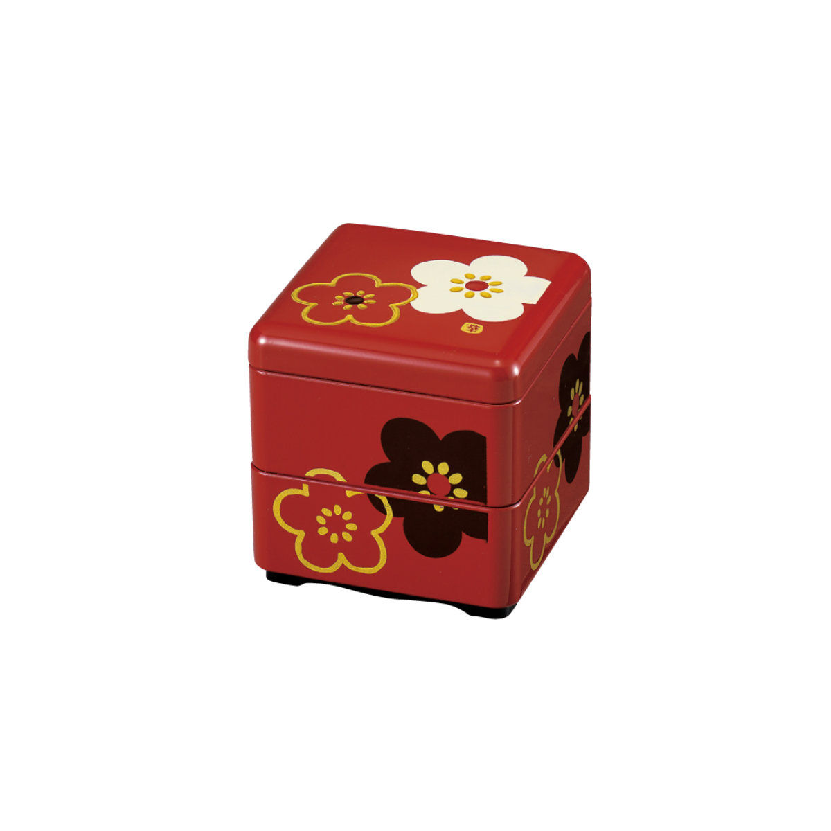 お重 ミニお重珍味角 HAKOYA 160ml ( 日本製 プラスチック 小さい 四角 和食 二段 和風 弁当箱 ランチボックス ギフト 和柄 おせち料理 おせち お節 御節 二段弁当箱 ) 【朱華文様梅】