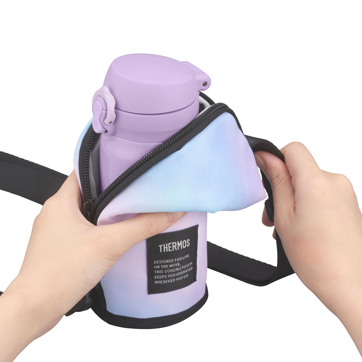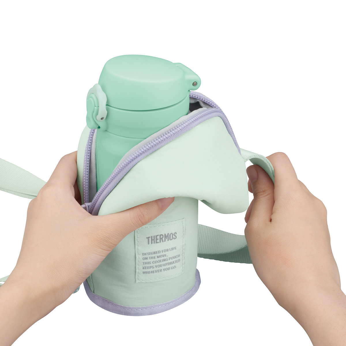 サーモス 水筒カバー 350ml 保冷マイボトルポーチ ( THERMOS 保冷 洗濯機対応 水筒ケース ボトルケース マグボトルポーチ 水筒 すいとう カバー ケース ホルダー 持ち運び 保護 ストラップ ストラップベルト ) 【パープル】