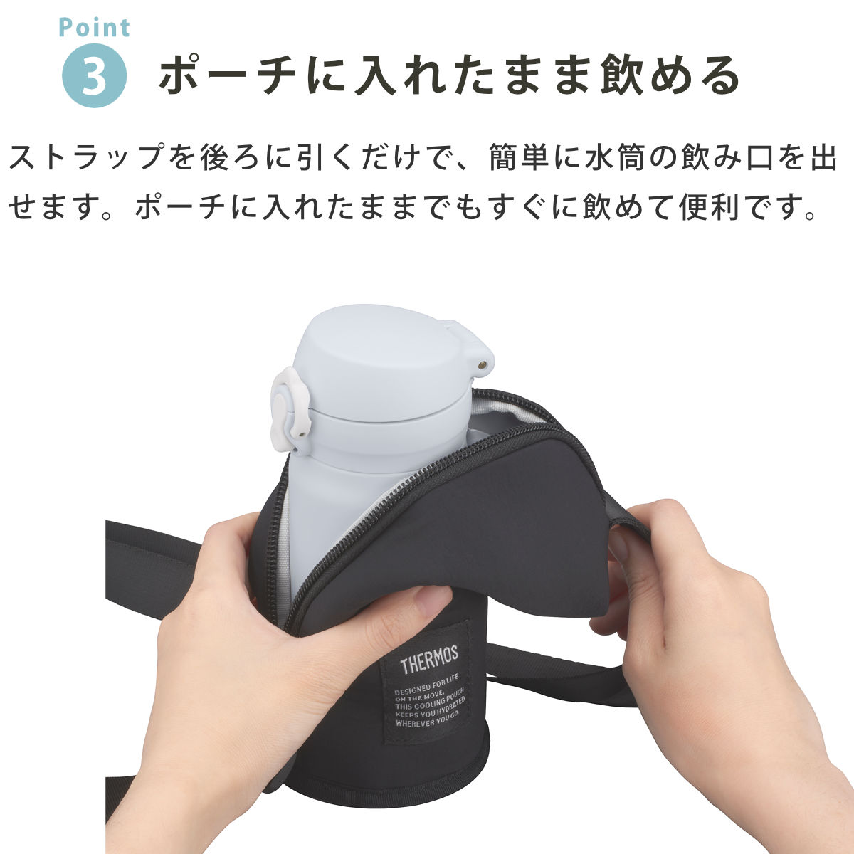 ●ポーチに入れたまま飲むことができます。