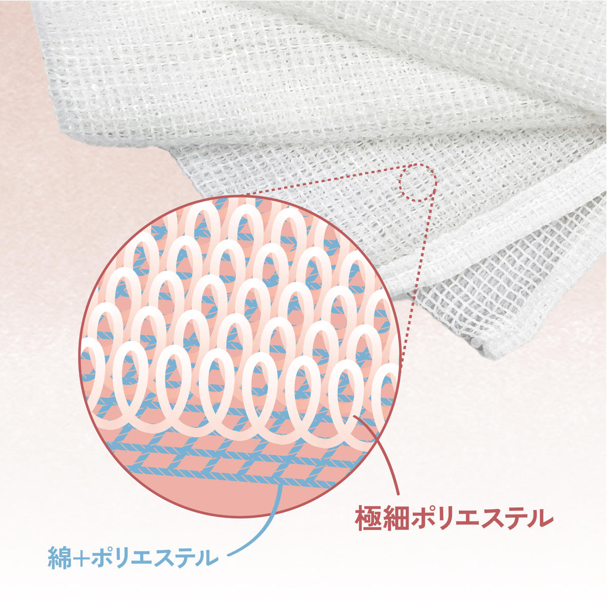 極細ポリエステル・綿を使用したパイル構造