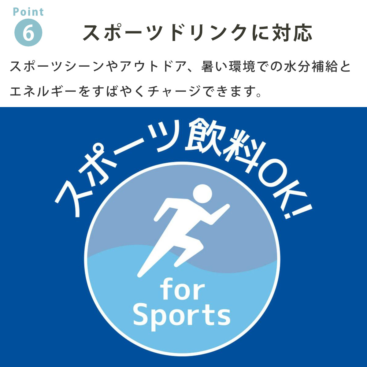 | 注意事項 | ※スポーツ飲料を入れてご使用になる場合は、塩分によりサビが発生する場合がございますので当日中に洗ってしっかり乾燥させてください。 ※商品ページ内には別の商品を含む画像を使用しています |