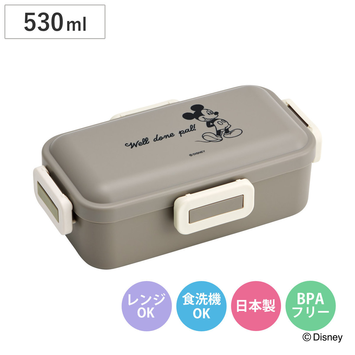 ふわっと弁当箱 ミッキーシンプルロゴ ( ランチボックス 食洗機対応 レンジ対応 一段 ドーム型 4点ロック 日本製 仕切り付き 食洗機OK レンジOK お弁当 弁当 一段弁当 )