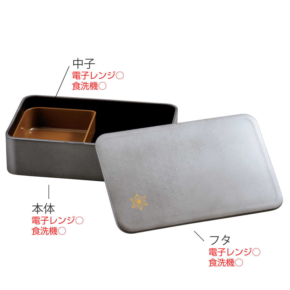 ●和モダンなデザインが美しい、落ち着いた佇まいのお弁当箱です。
