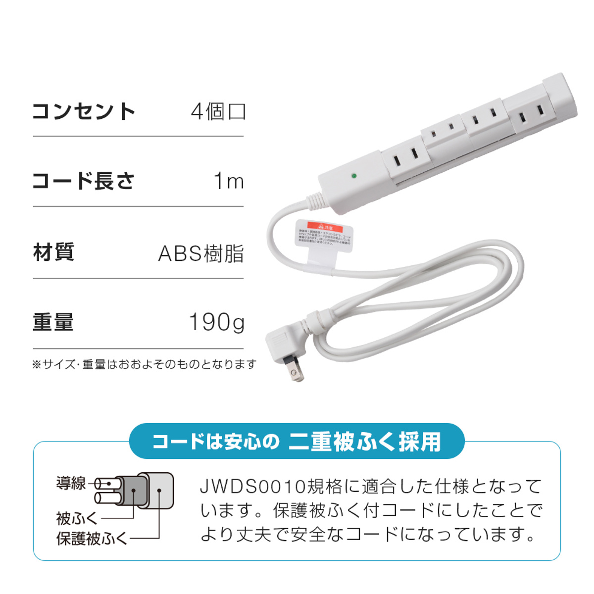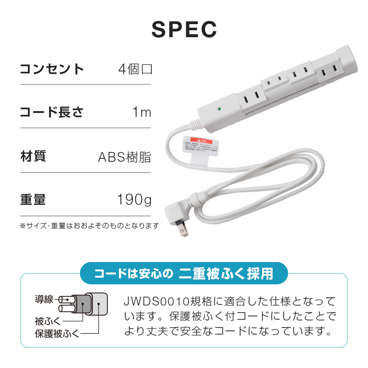 電源ケーブル 延長コード 回転タップ コンセント 4個口 ( 4口 コード付きタップ 1m 雷ガード付き コンセントタップ コンセントプラグ コードタップ OAタップ 4口コンセント 回転式 アダプター対応 オフィス 会社 自宅 リビング )