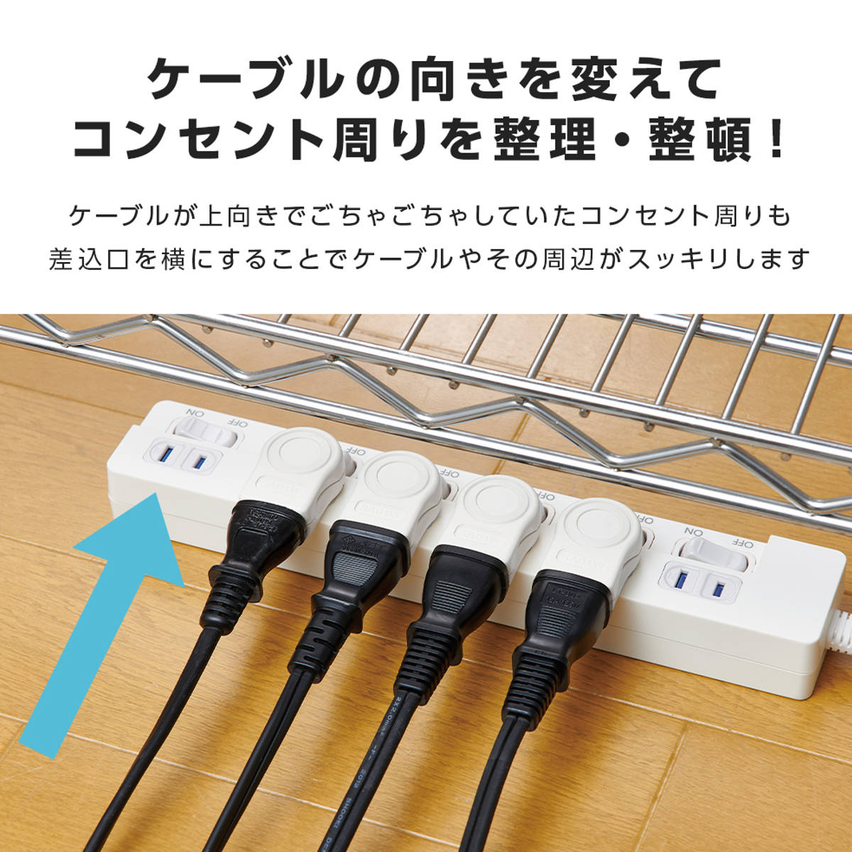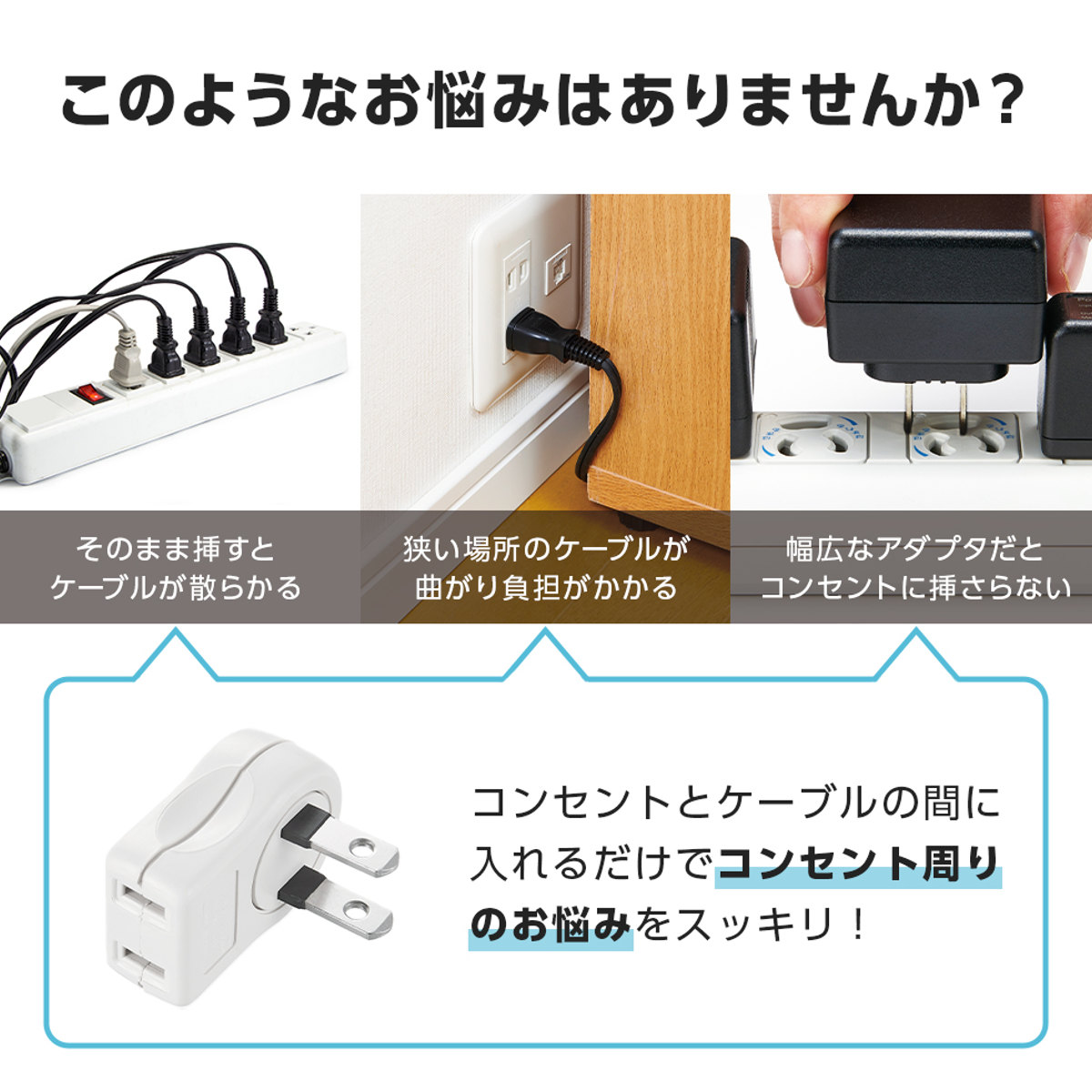 ケーブルの向きを変えられるコンセントタップ