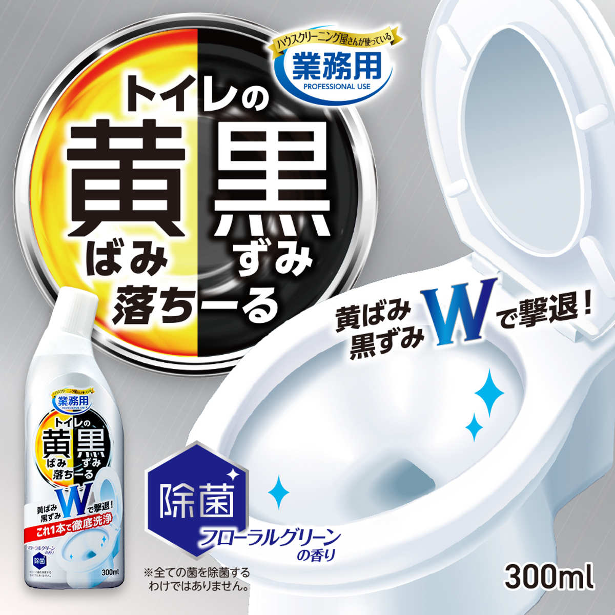 ハウスクリーニング業者やビルメンテナンス現場で使用されている、業務用トイレ用洗浄剤です。頑固な黄ばみ・黒ずみにしっかり密着し、これ1本で徹底洗浄。清掃中や清掃後も不快感の少ない、さわやかなフローラルグリーンの香りです。