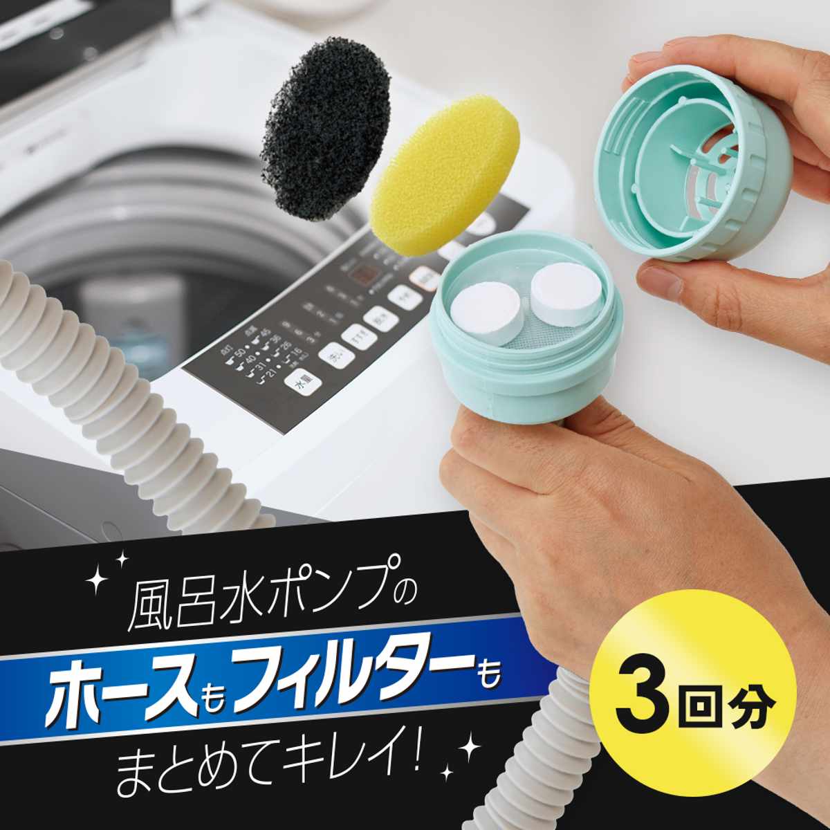 洗浄剤 風呂水ポンプ用 3回分 ( 洗濯機 風呂水 ポンプ タブレット 交換フィルター付き 日本製 洗濯用品 掃除用品 掃除 清掃用品 掃除グッズ )