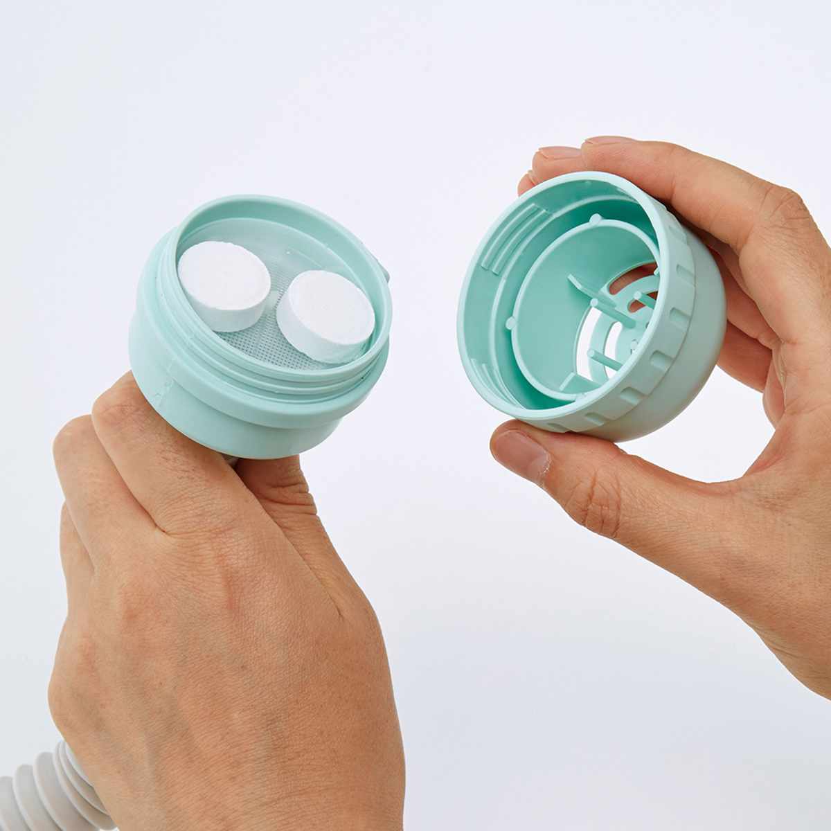 アルカリ剤と発泡力で皮脂汚れを浮かせて落とし、漂白力でカビ汚れまでしっかり洗浄。ポンプやホース内部に溜まったドロドロ汚れやヌメリもすっきり落とします。