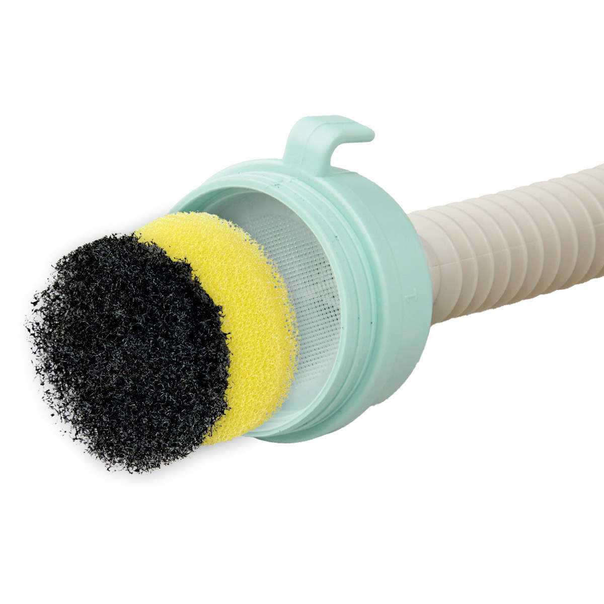 炭配合の粗目タイプと、抗菌加工を施した細目タイプの2種類の交換用フィルター付き。洗浄後に汚れたフィルターとすぐに交換でき、風呂水ポンプ全体を清潔に保てます。