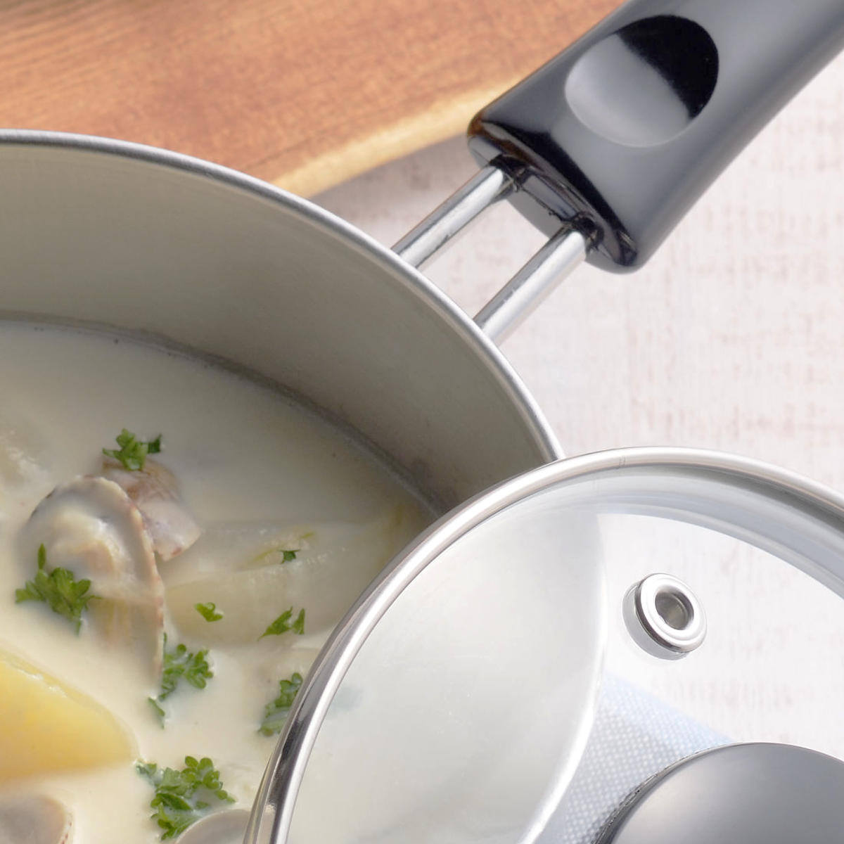 金物の産地・新潟県燕三条市で丁寧に製造された、ステンレス製の片手鍋です。丈夫で錆びに強いステンレス素材を使用しているため、美しい状態を長く保てます。汚れも落としやすく、毎日気軽にお使いいただけます。