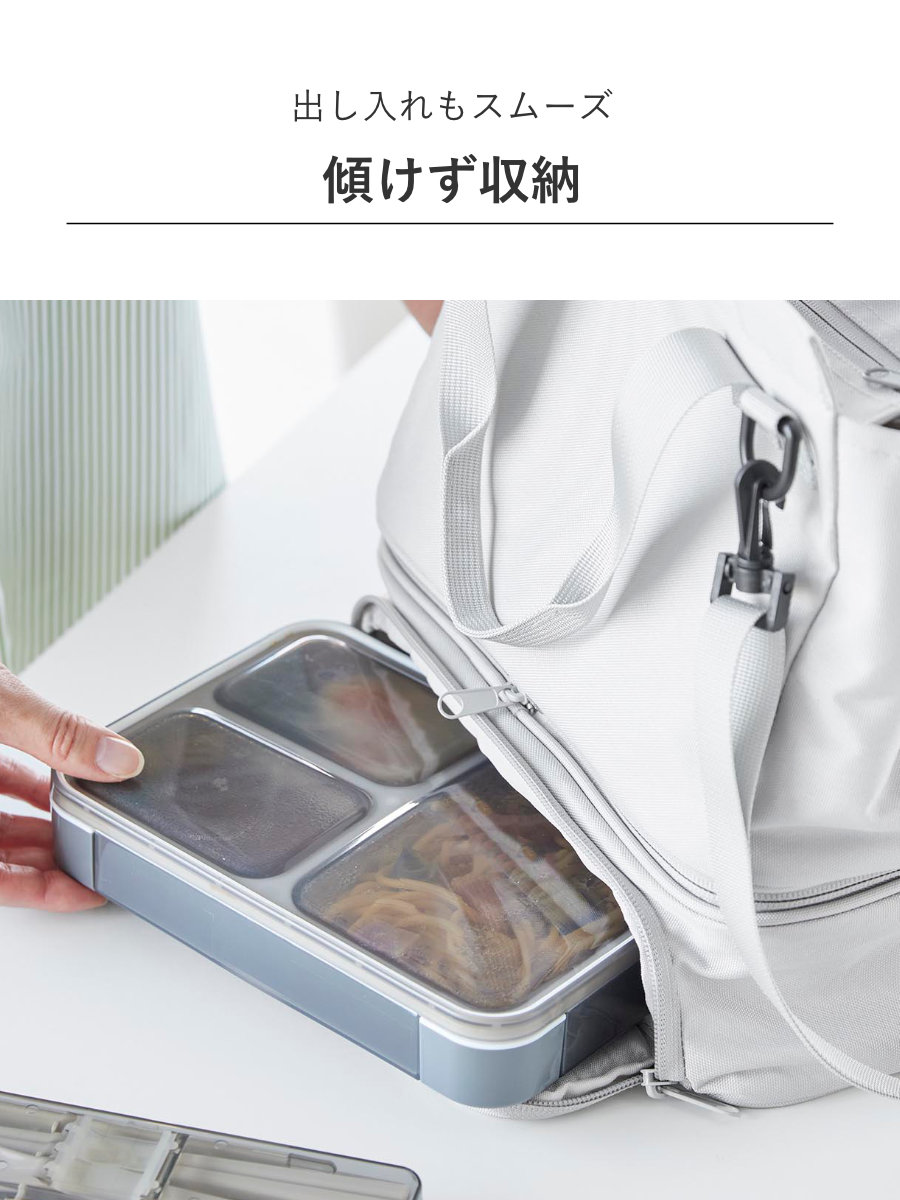 下段バッグは取り出し口が大きく開く設計で、お弁当を傾けることなくスムーズに出し入れ可能です。