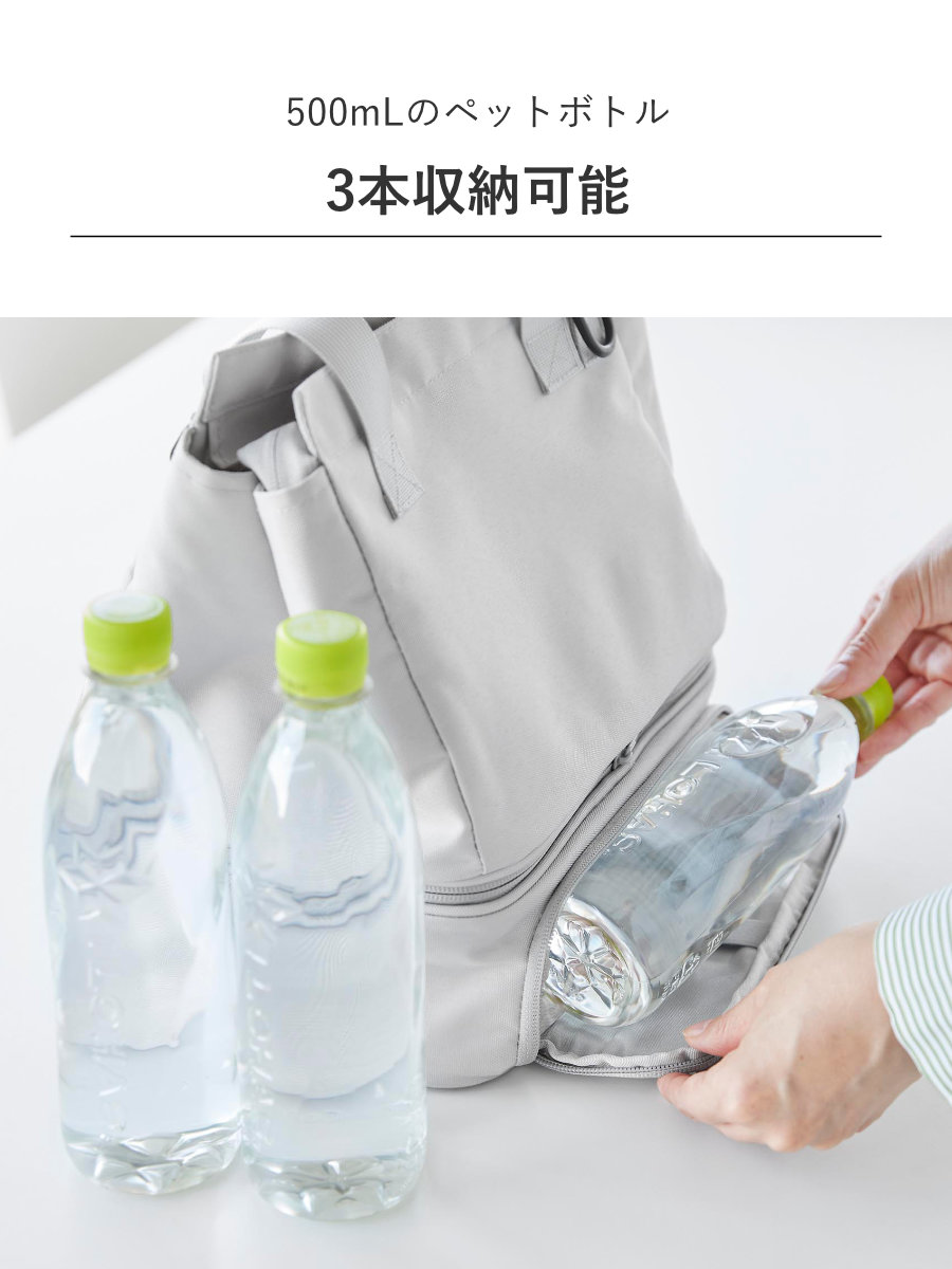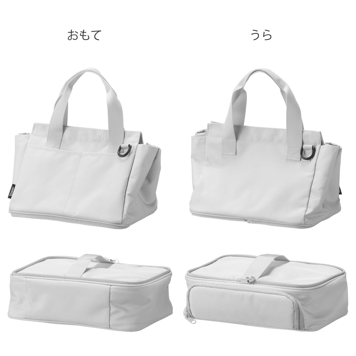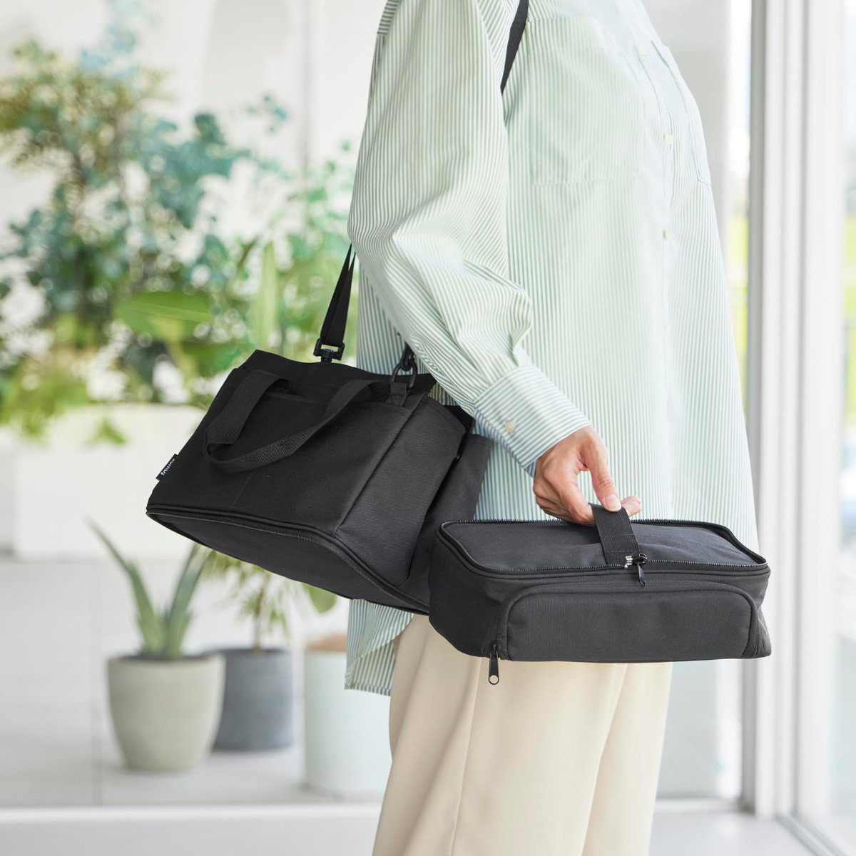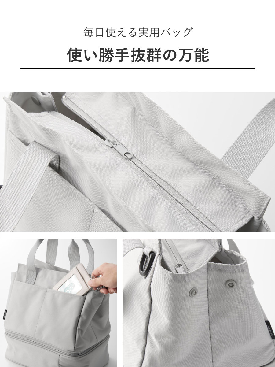 ファスナー仕様により、上下を簡単に分離でき、下段はランチバッグ、上段は普段使いのバッグとしても活躍します。